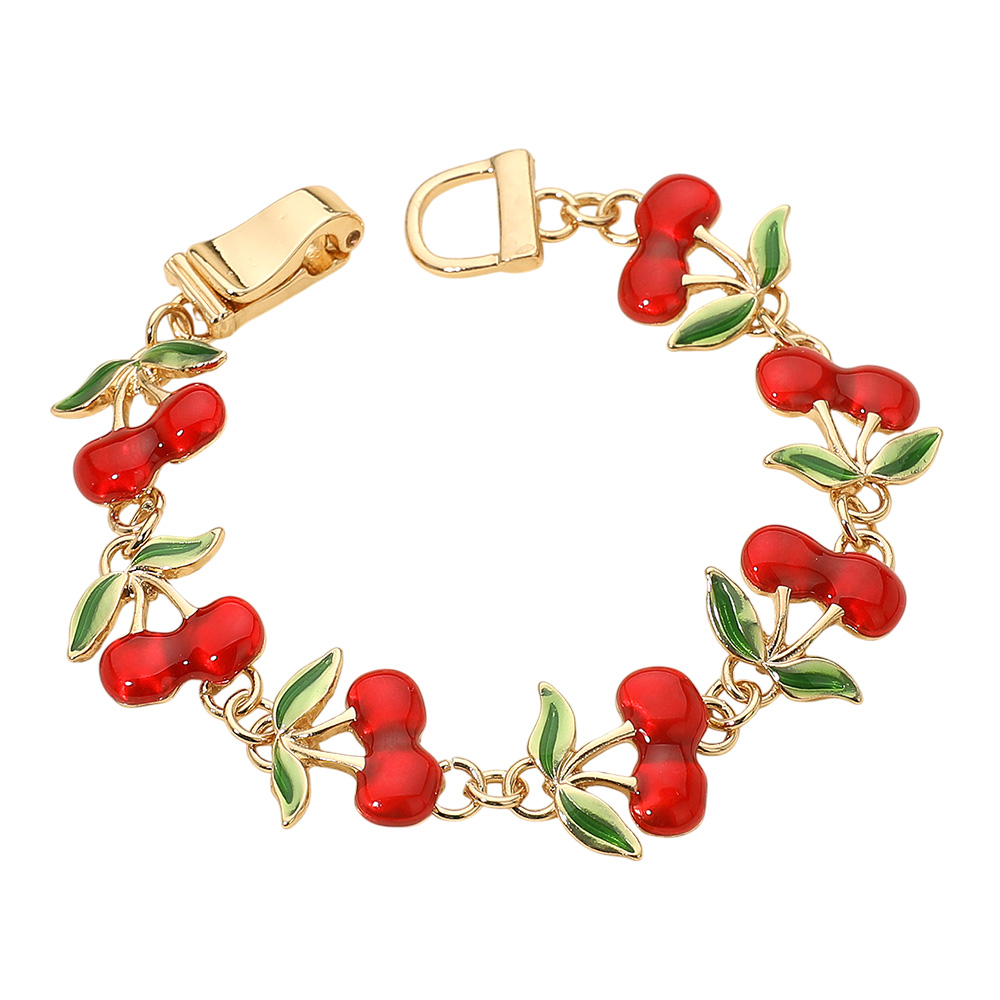 • Vibrant cherry charm bracelet featuring detailed fruit and leaf designs for a cheerful look. Lightweight and fun, this accessory is perfect for casual outfits, summer style, or gifting. A delightful bracelet that adds personality, charm, and a touch of whimsy to any jewelry collection.