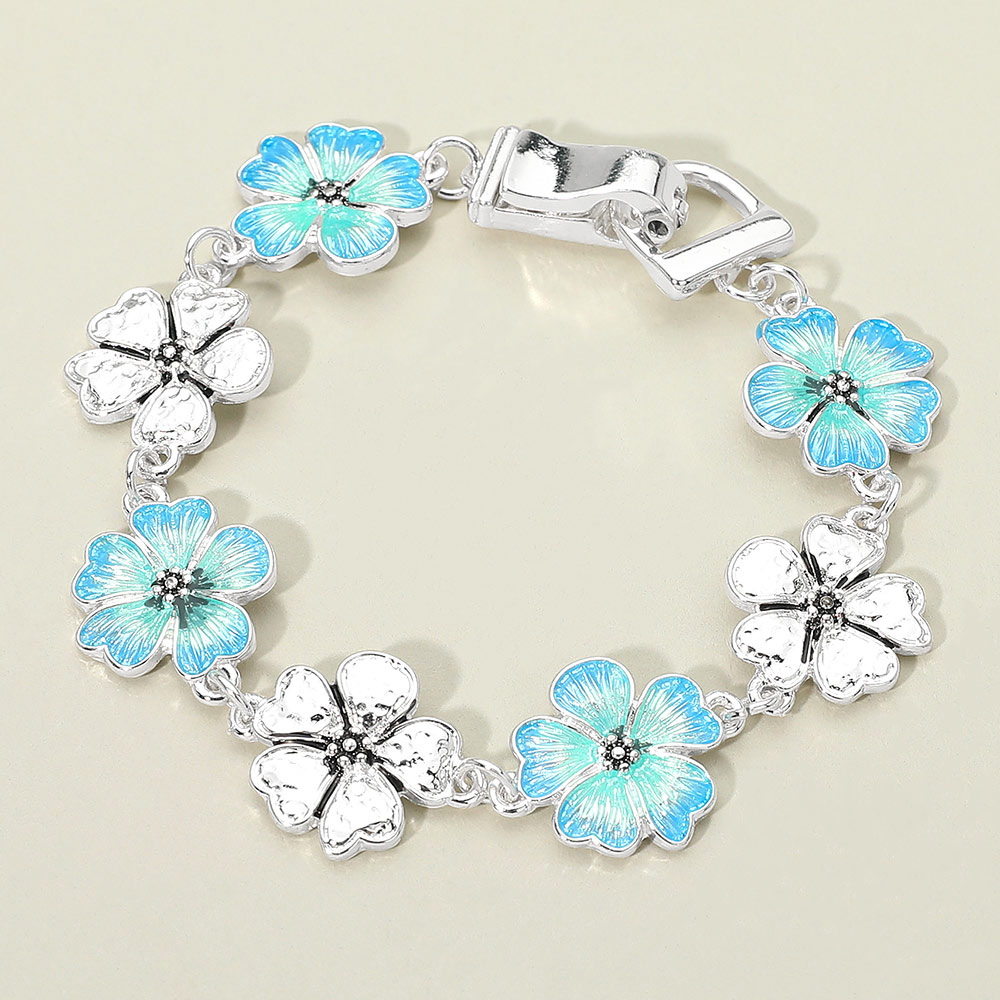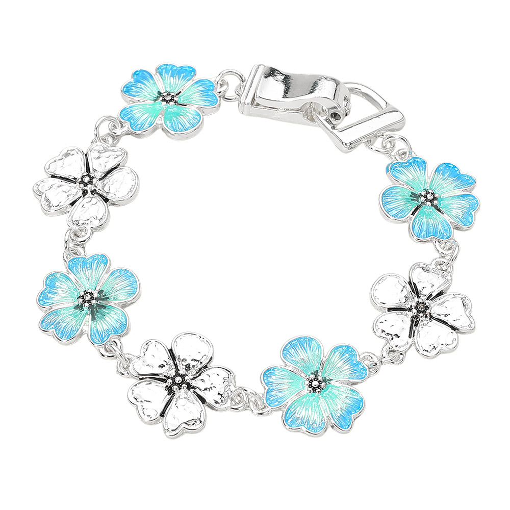 Details • Size : 0.7" H, 7" + 0.5" L • Magnetic Closure • Elegant floral charm bracelet featuring linked flower accents and a secure magnetic clasp. Designed with sculpted petal details and a polished finish, this bracelet adds a graceful touch to everyday outfits, gifting collections, and seasonal accessory assortments with effortless wear appeal. • Lead and Nickel Compliant