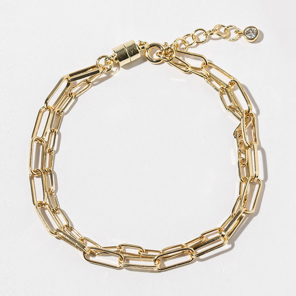 Details • Size : 0.3" H, 7" + 1" L • Magnetic Clasp Closure • Elevate your everyday look with this modern paperclip link bracelet featuring a secure magnetic clasp that makes it easy to put on and remove. Designed for effortless style, its sleek linked silhouette pairs perfectly with casual outfits or layered accessories for a chic and polished finish. • Gold Dipped • Lead and Nickel Compliant • Made In Korea