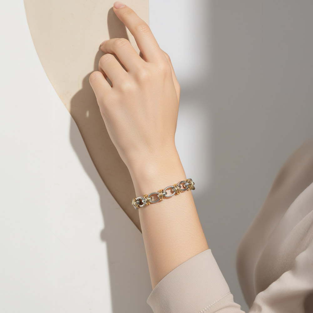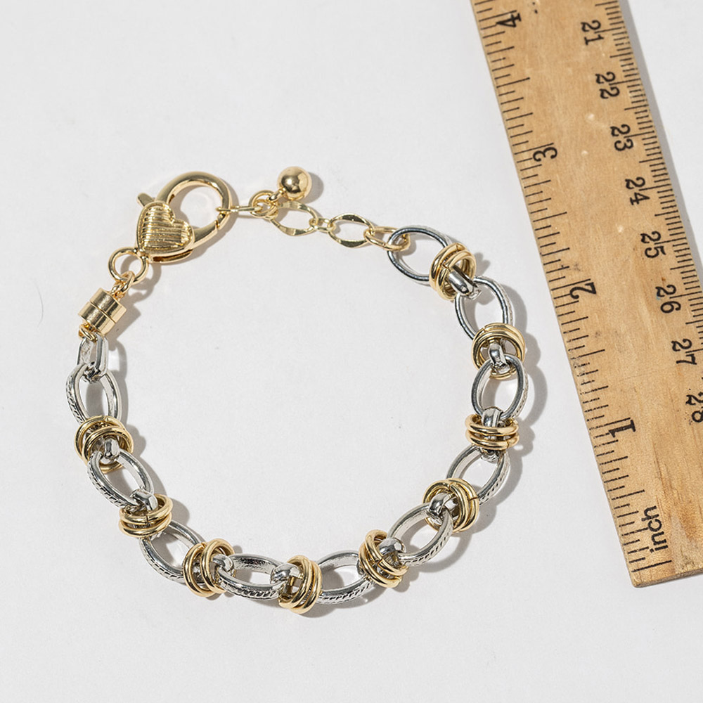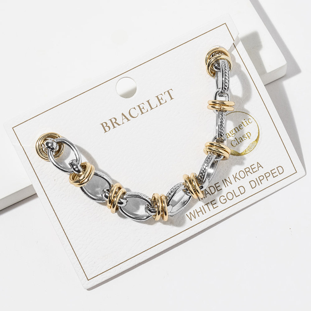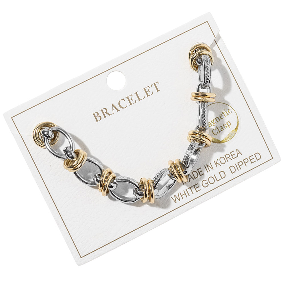 Details • Size : 0.3" H, 7.5" + 1" L • Magnetic Closure • Statement link bracelet featuring a secure magnetic clasp for effortless on and off wear. Designed with layered link details that add dimension and movement, making it perfect for everyday styling or stacking with other bracelets. A versatile accessory ideal for boutiques, gift assortments, and trend-focused jewelry collections. • Gold Dipped • Lead and Nickel Compliant • Made In Korea