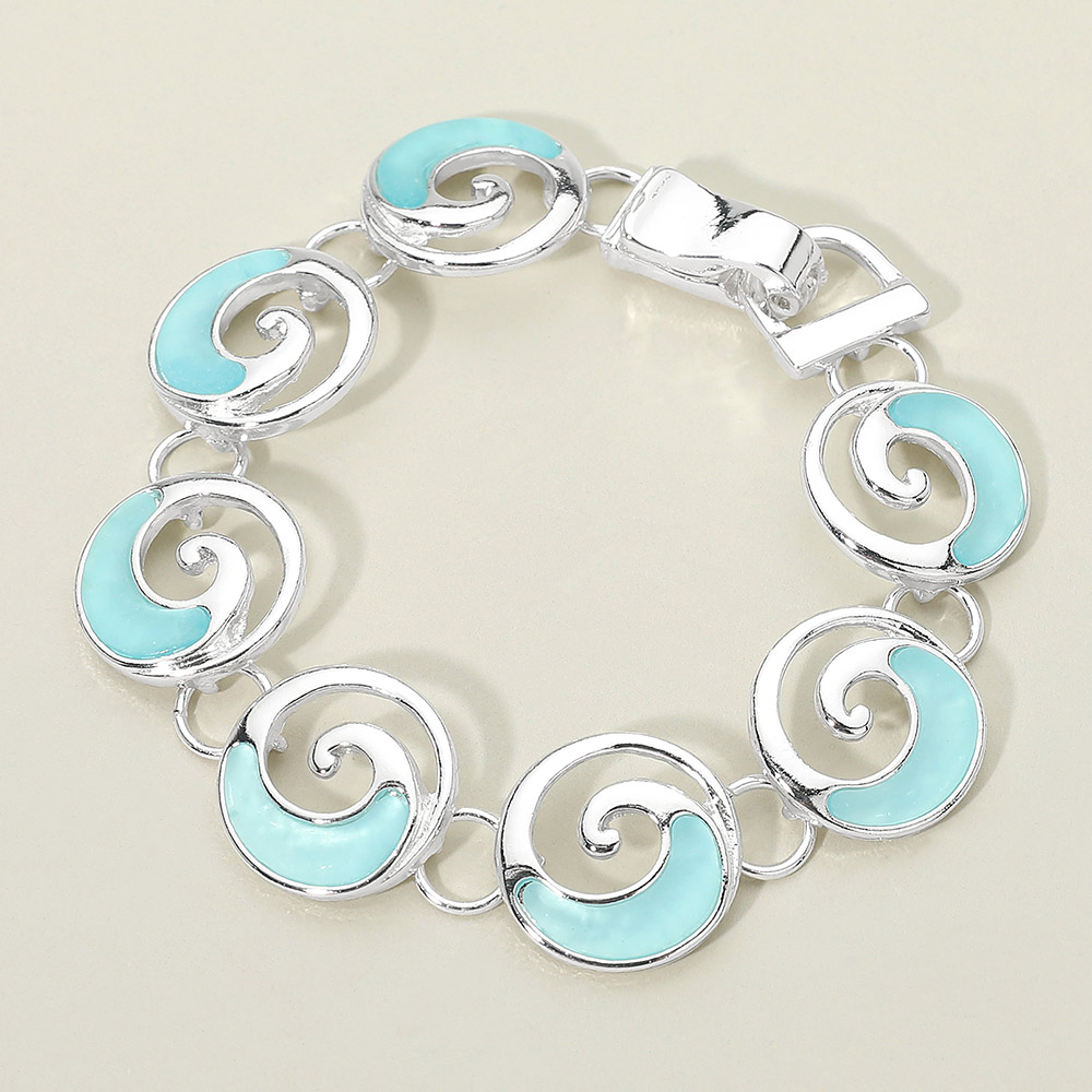 • Elegant swirl link bracelet designed with flowing wave-inspired shapes and a secure magnetic closure for effortless wear. A versatile accessory that complements casual and resort looks, making it ideal for beach themes, gift shops, and seasonal jewelry collections.