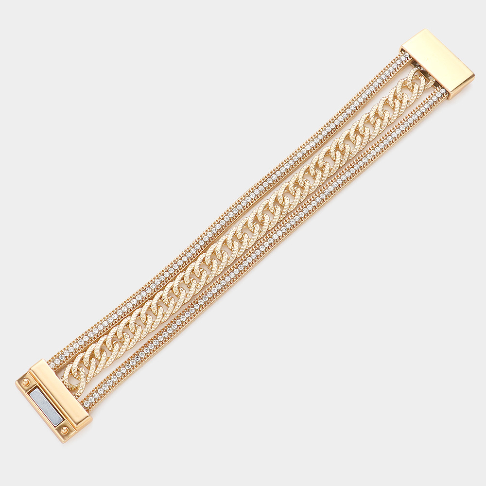 Stone Paved Chain Embellished Magnetic Bracelet