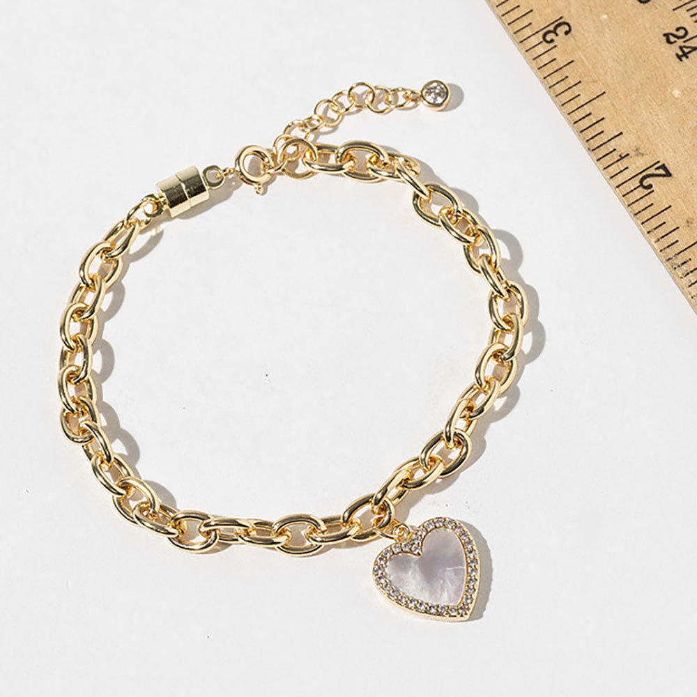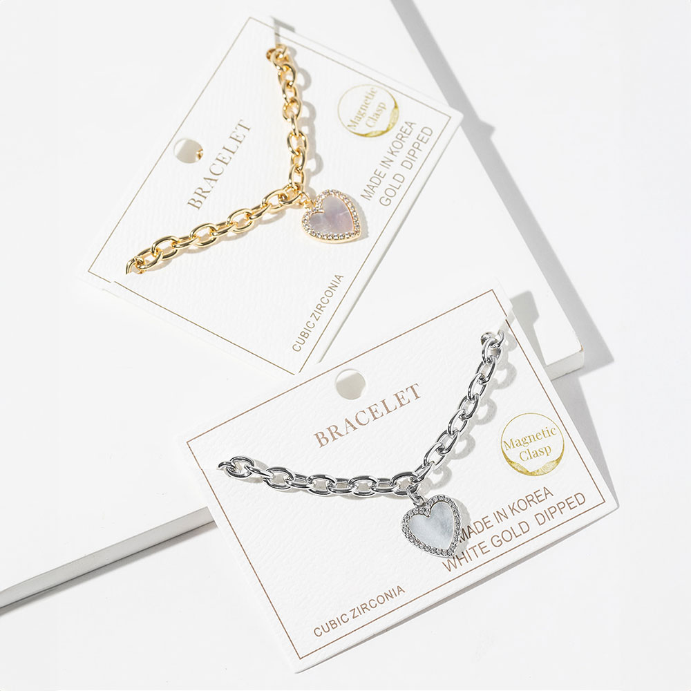 White Gold Dipped CZ Stone Rim Mother of Pearl Heart Charm Magnetic Chain Bracelet White Gold Dipped CZ Stone Rim Mother of Pearl Heart Charm Magnetic Chain Bracelet White Gold Dipped CZ Stone Rim Mother of Pearl Heart Charm Magnetic Chain Bracelet White Gold Dipped CZ Stone Rim Mother of Pearl Heart Charm Magnetic Chain Bracelet