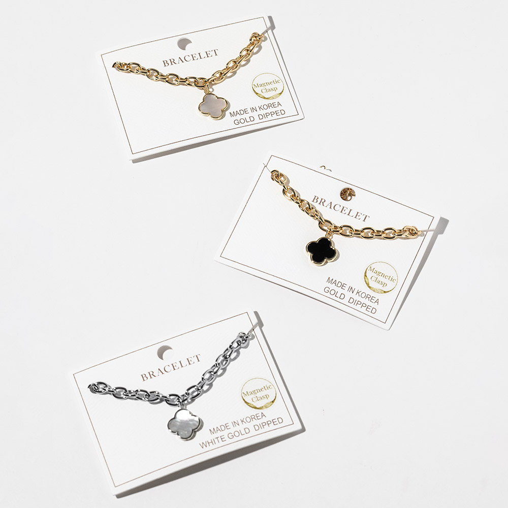 • Elevate your everyday style with this charming link bracelet featuring a delicate quatrefoil drop accent and an easy magnetic closure for effortless wear. Its polished shine and elegant silhouette make it perfect for stacking, gifting, or adding a touch of refinement to any look. Ideal for casual or dressy outfits.