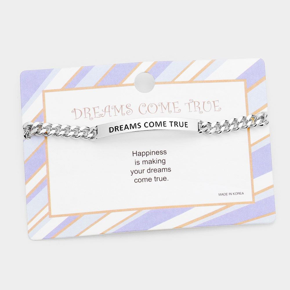 DREAMS COME TRUE Curved Metal Bar Message Bracelet
