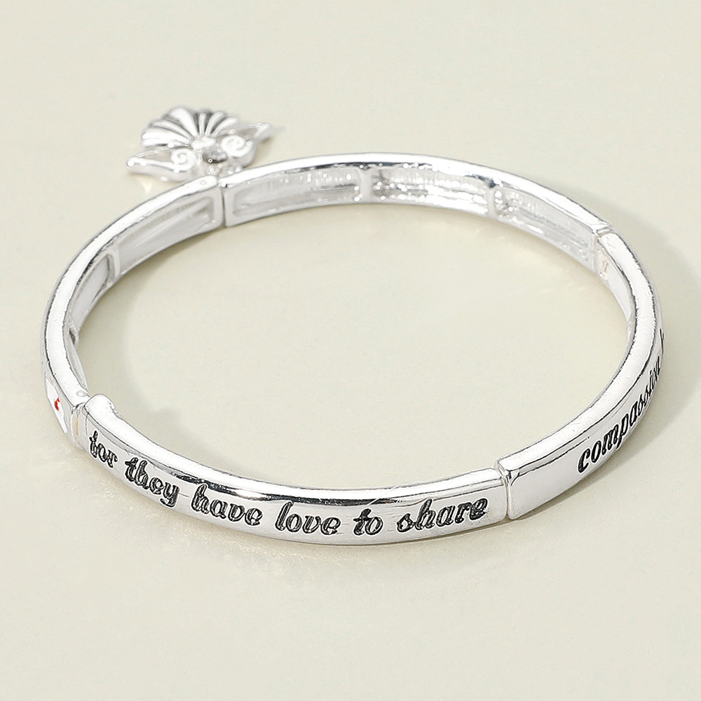 Details • Size : 0.25" H • Charm Size : 0.7" X 0.6" • Stretchable • Nurse’s Blessing bracelet featuring engraved inspirational message and angel charm, a meaningful accessory designed to honor compassion and dedication. A heartfelt appreciation gift perfect for celebrating nurses and expressing gratitude for their care and kindness. • Lead and Nickel Compliant