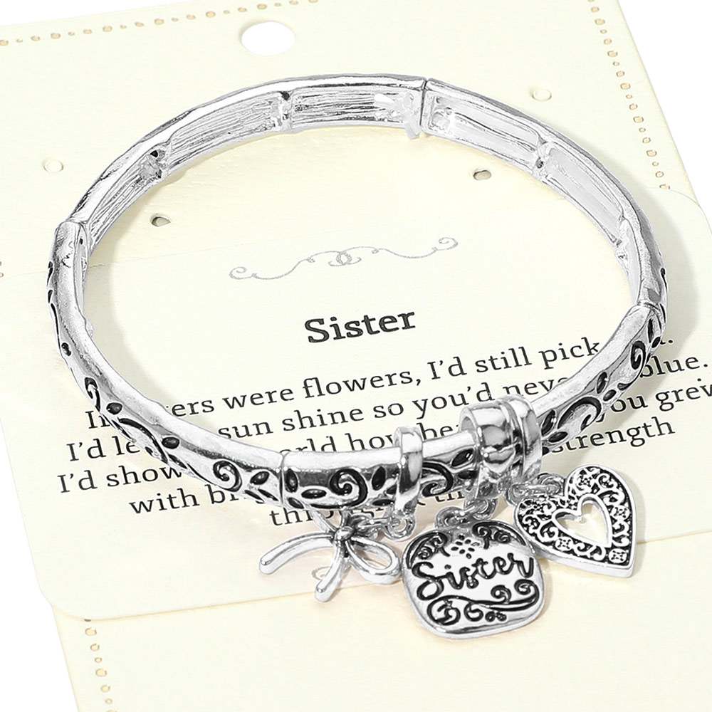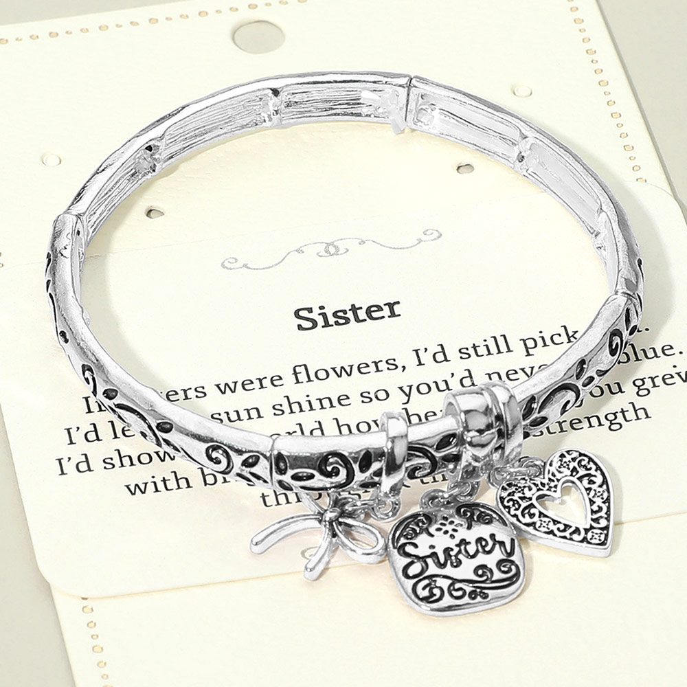 Sister Message Bow Heart Charm Stretch Bracelet Sister Message Bow Heart Charm Stretch Bracelet Sister Message Bow Heart Charm Stretch Bracelet Sister Message Bow Heart Charm Stretch Bracelet