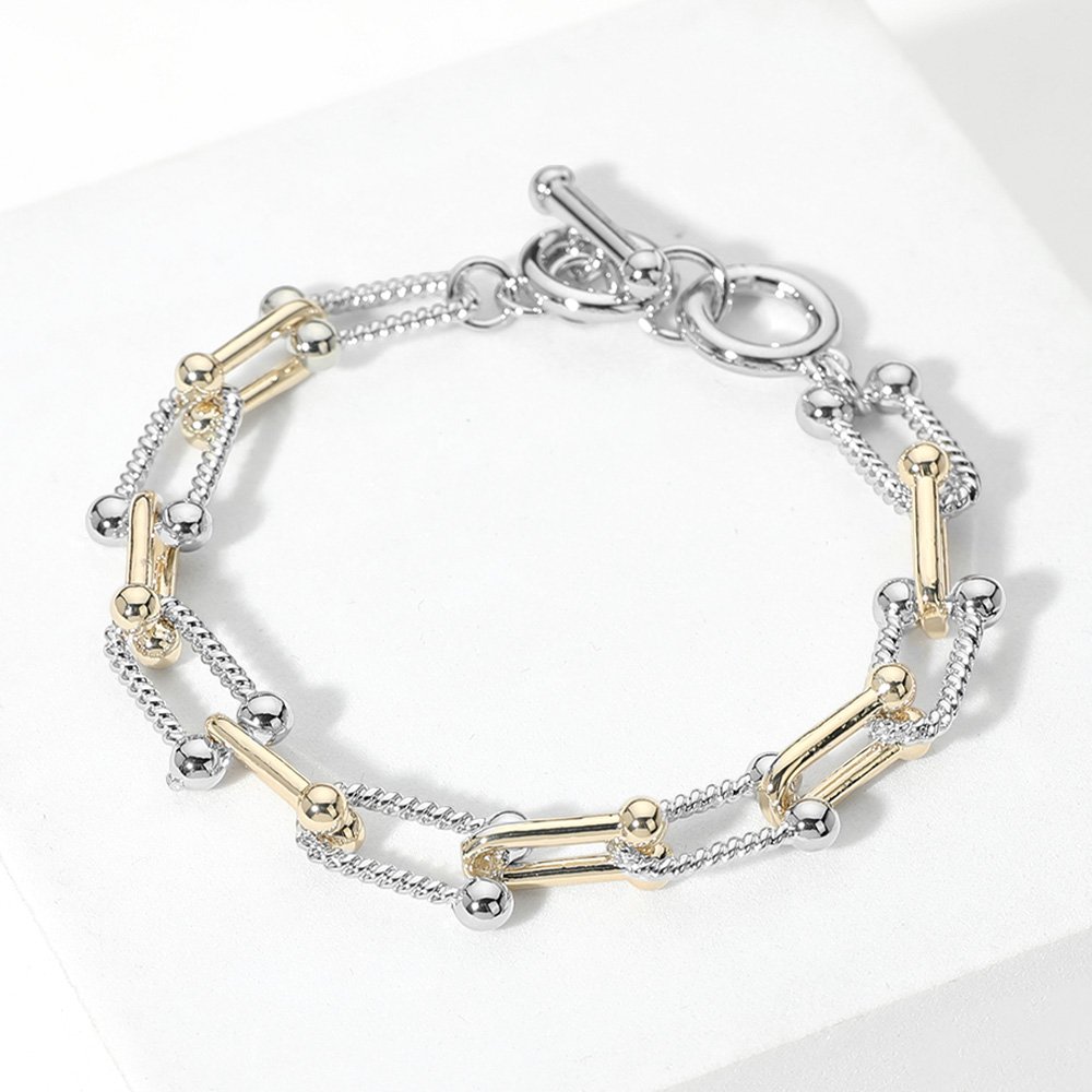 14K Gold Plated Two Tone Hardware Link Toggle Bracelet