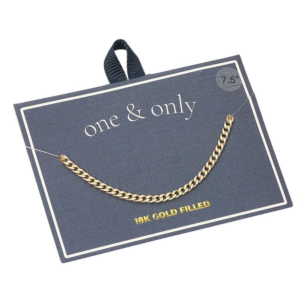 Details • Size : 0.1" H (3mm), 7.5" L • Lobster Clasp • Timeless Cuban chain bracelet featuring smooth flat links with a sleek polished shine. Its classic design offers effortless sophistication, perfect for daily wear or layering with other pieces. A versatile accessory that adds a refined touch to any modern or classic look. • Lead and Nickel Compliant • Gold Filled • Made In Brazil