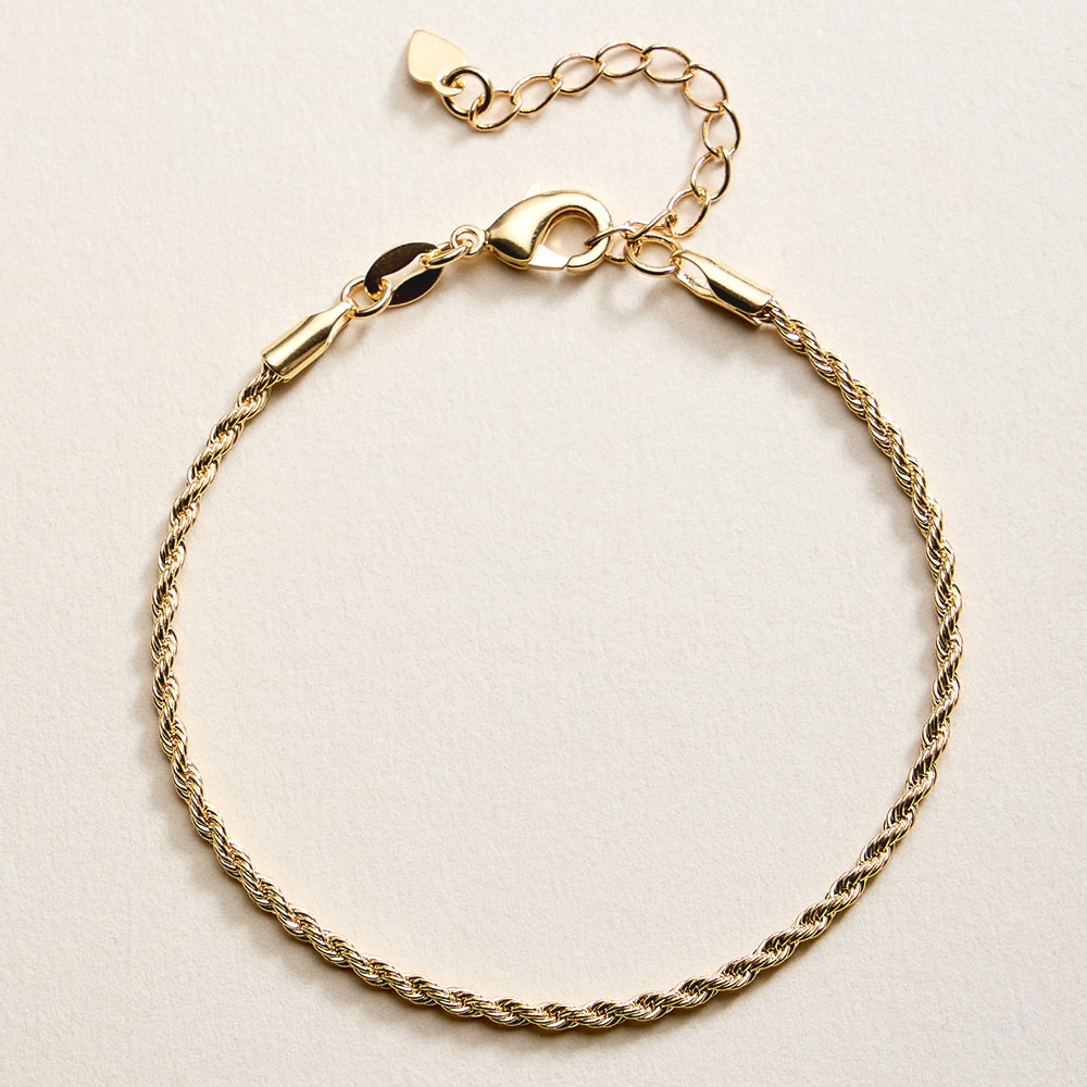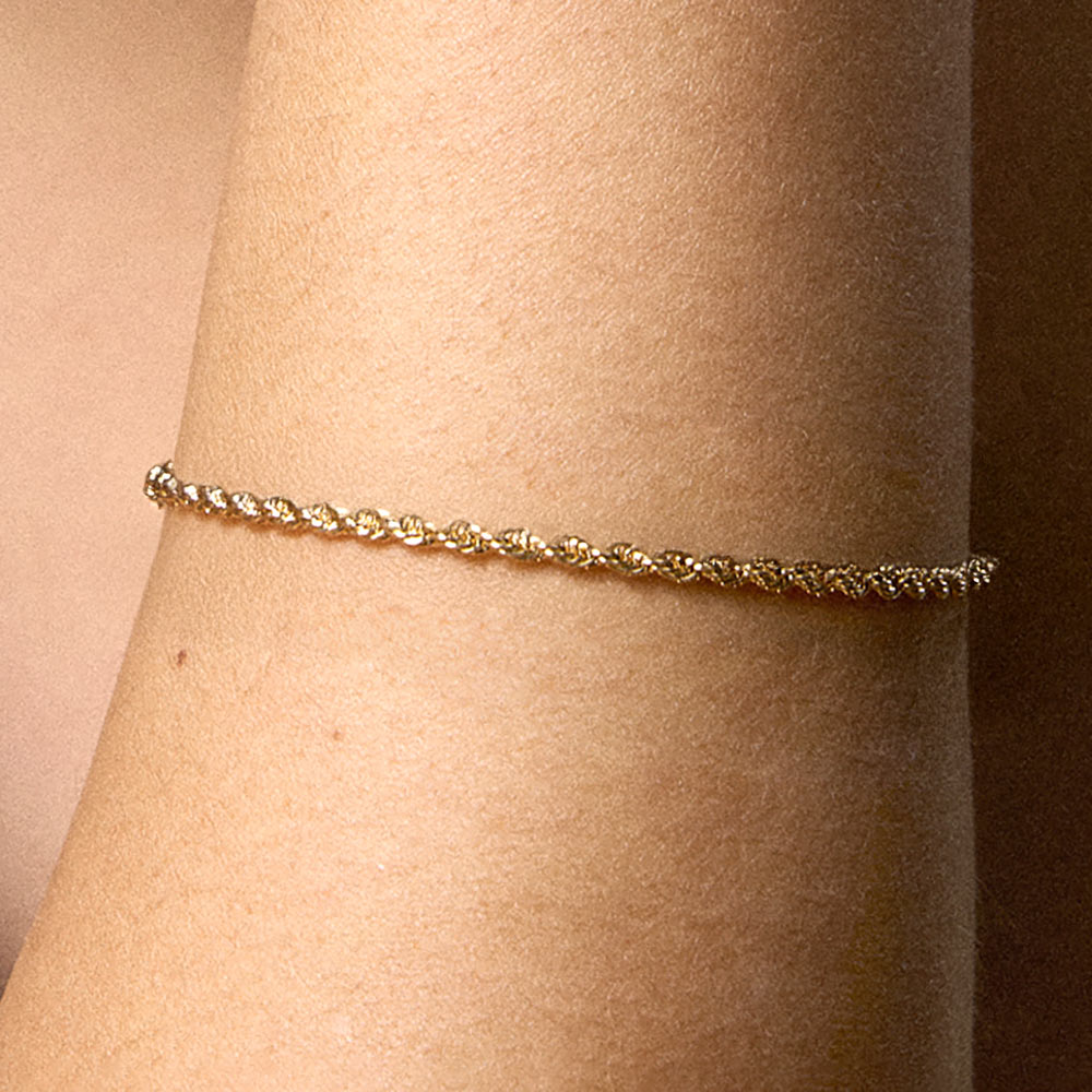 Details • Size : 0.1" H, 7" + 1.75" L • Lobster Clasp Closure • This minimal rope chain bracelet features a refined rope-style design that adds subtle texture and shine to everyday looks. Lightweight with an adjustable fit, it layers beautifully or stands alone as a timeless accent. A versatile bracelet choice for casual wear, special occasions, gifting, and curated retail collections. • Gold Filled • Hypoallergenic • Lead and Nickel Compliant • Made In Brazil