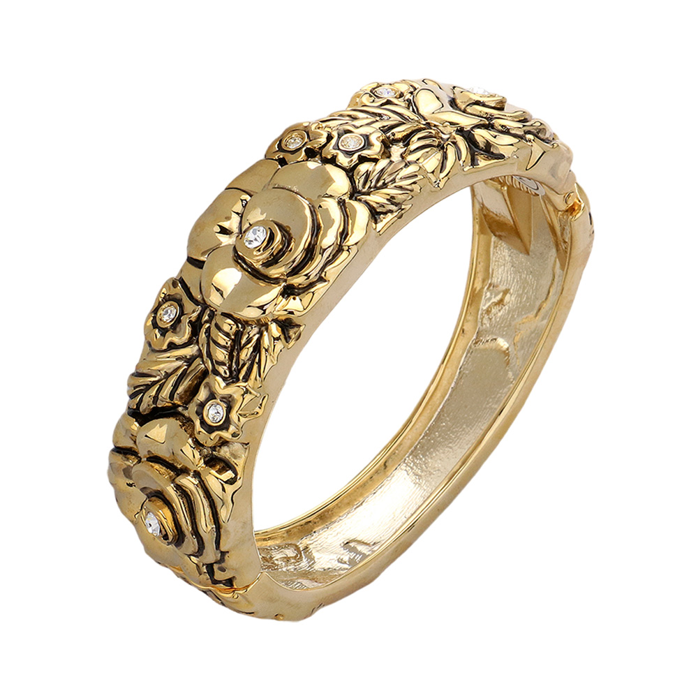 Round Stone Tip Antique Metal Hinged Cuff Bracelet