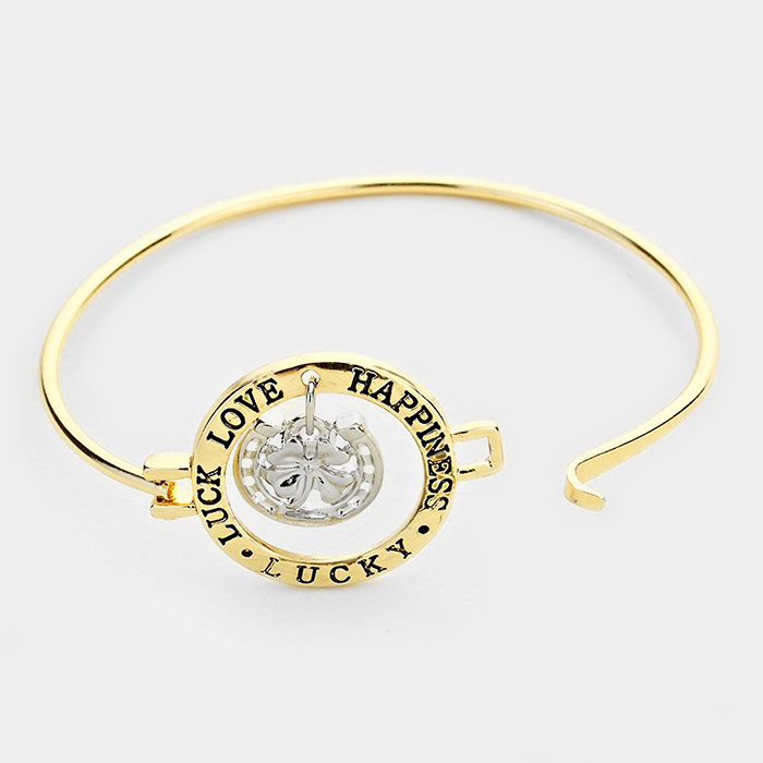 "Luck Love Happiness Lucky" Four Leaf Clover Hook Bracelet
