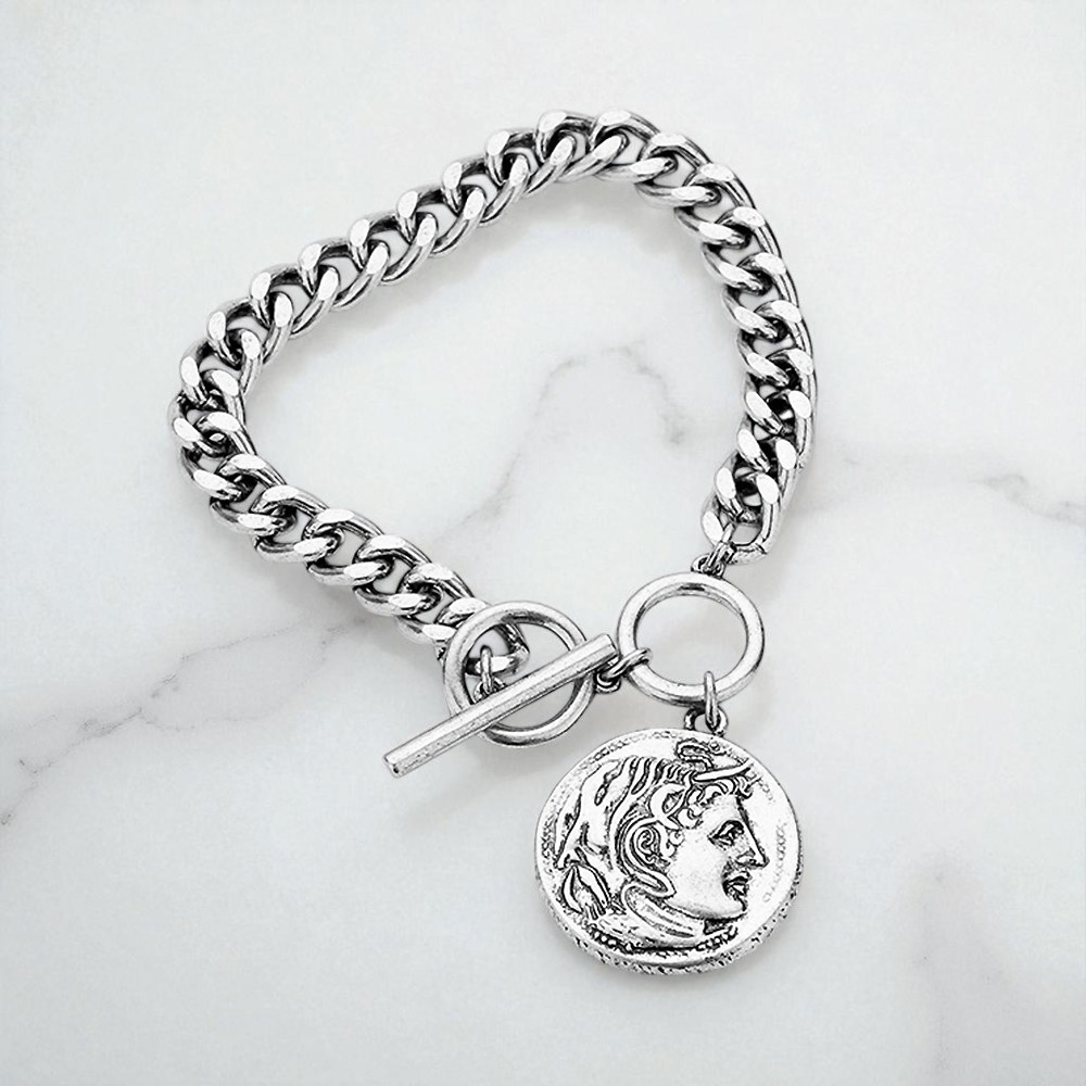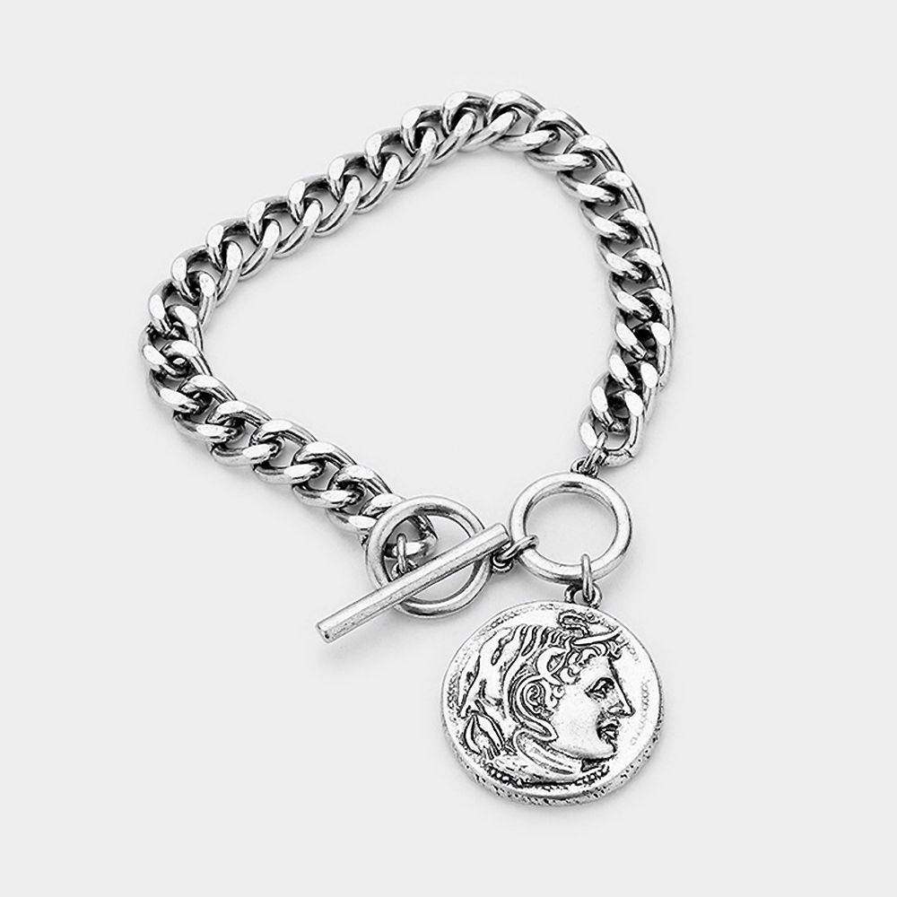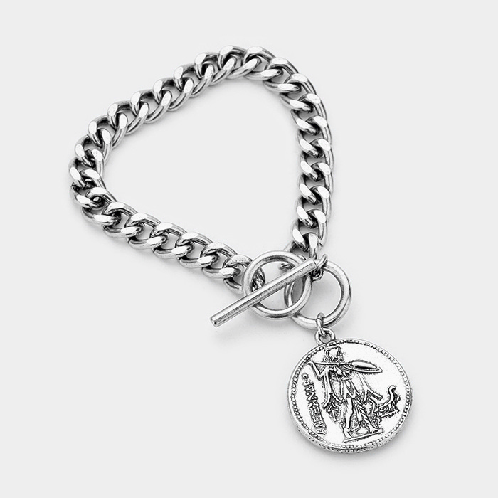 Turquoise Stone Accent Boho Western Horse Embossed Coin Pendant Necklace