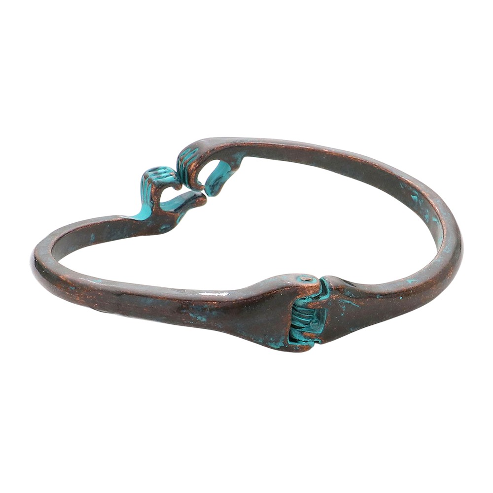 • Celebrate love and artistry with this rustic heart hands metal bangle bracelet. Designed with a creative hand-shaped heart centerpiece and an antique-inspired finish, it adds a meaningful touch to any outfit. Perfect for gifting or expressing timeless affection in style.