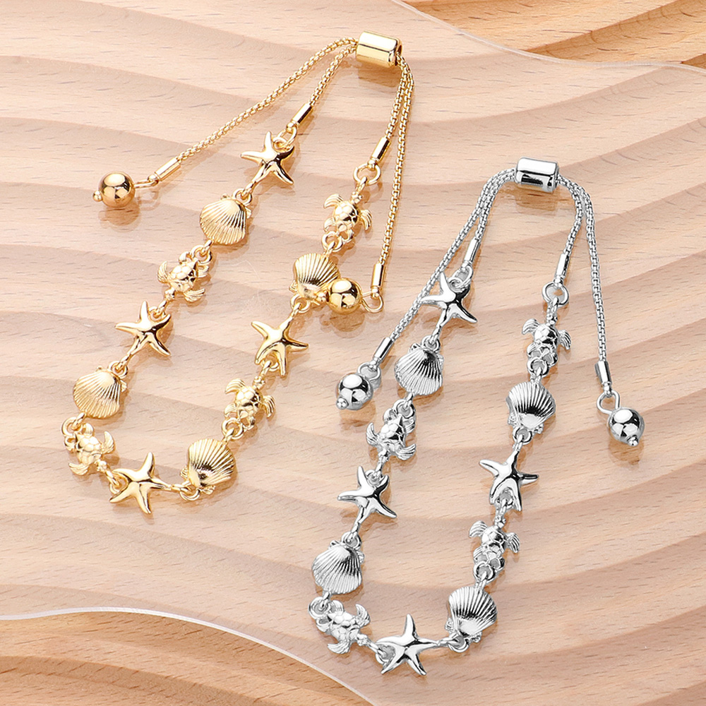 Metal Starfish Turtle Shell Link Adjustable Pull Tie Bracelet