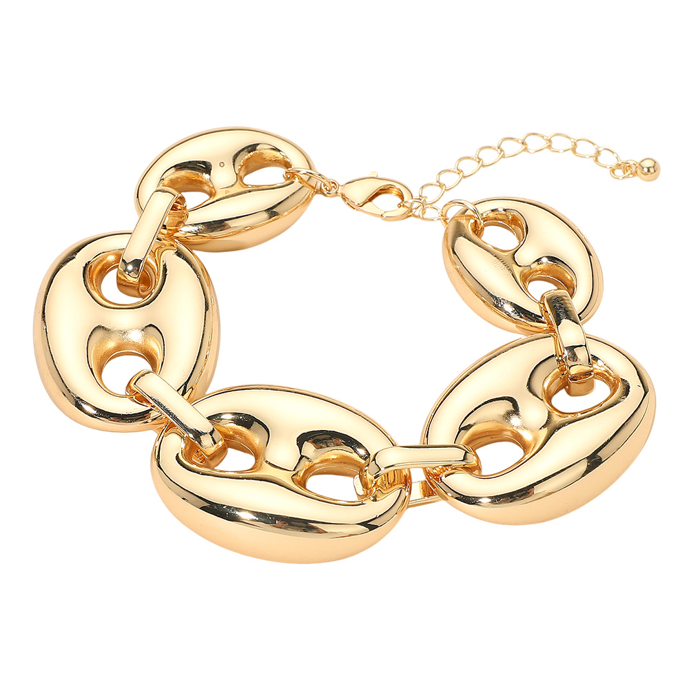 • Turn heads with this statement link bracelet crafted with oversized oval links and a sleek polished finish. Its bold and modern design makes it a standout accessory, perfect for adding a touch of contemporary style to both casual and dressy outfits.