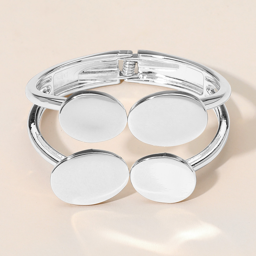 • Add a touch of modern elegance with this oval cuff bracelet featuring a sleek geometric design. Perfect for both casual and formal looks, this statement accessory enhances your style with contemporary sophistication and timeless appeal.