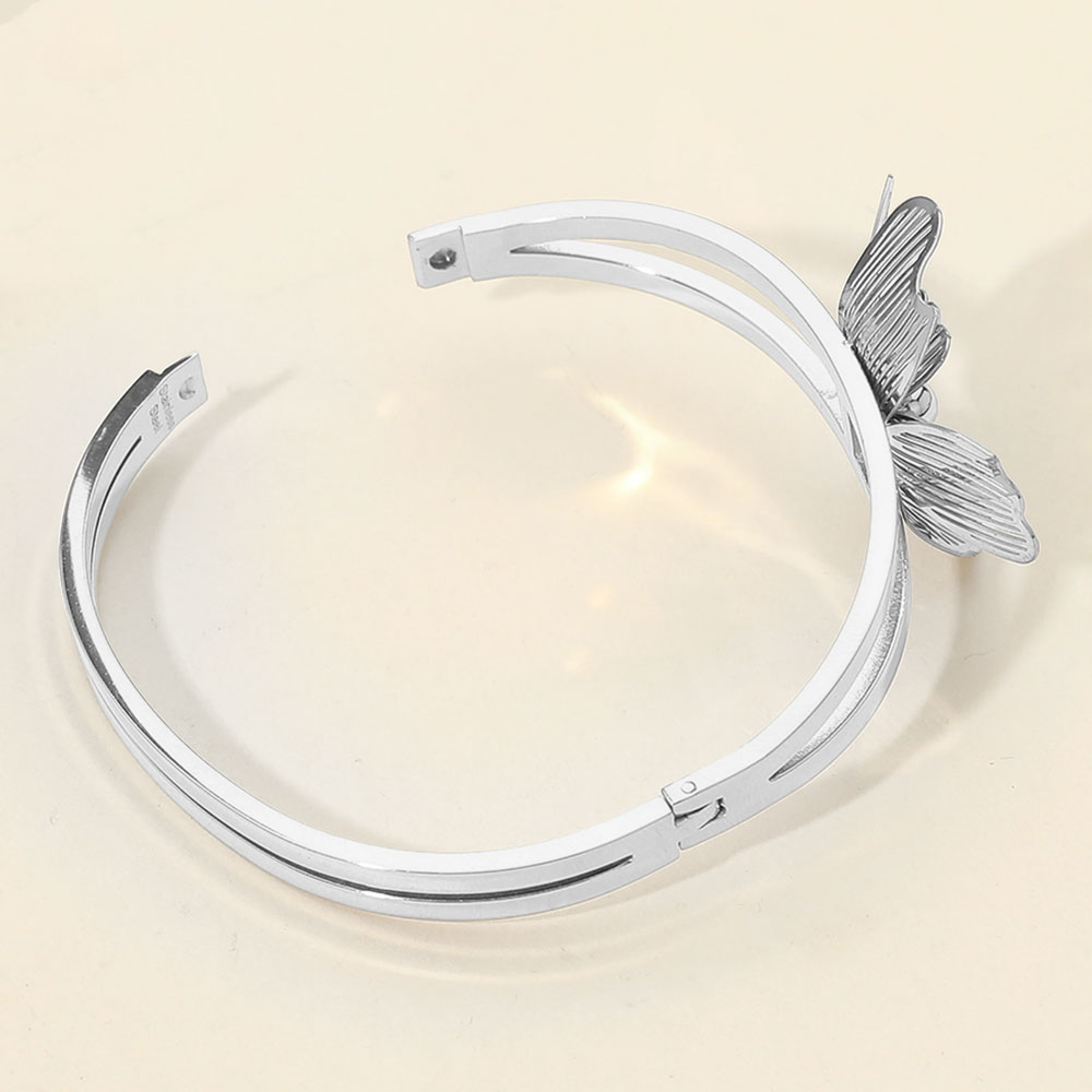 Stainless Steel Cutout Petal Flower Accent Hinged Bangle Bracelet
