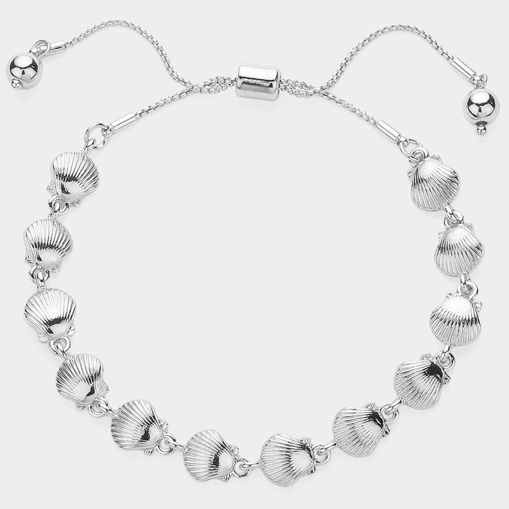 Textured Metal Shell Link Adjustable Pull Tie Bracelet