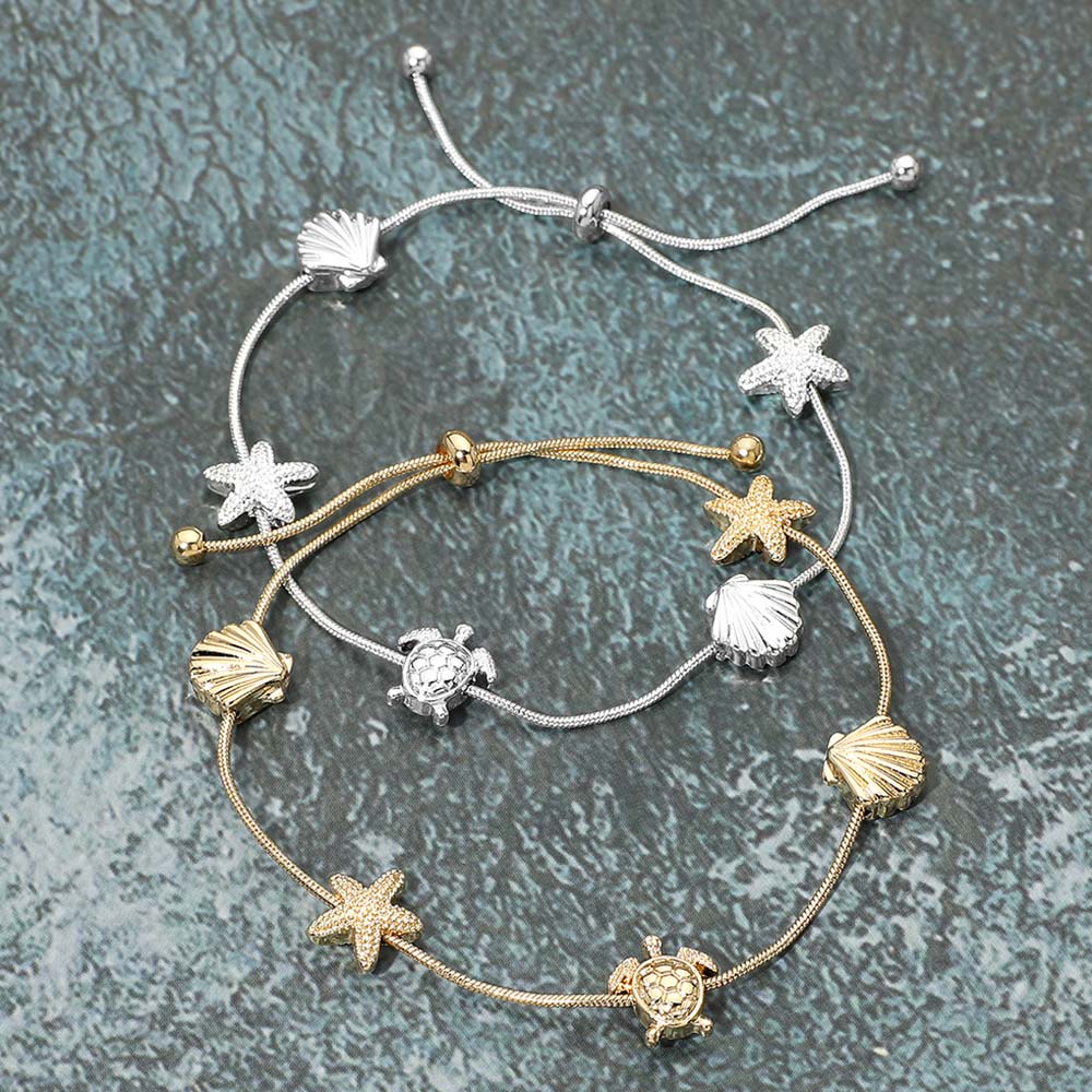 Textured Metal Starfish Shell Turtle Station Cinch Pull Tie Bracelet Textured Metal Starfish Shell Turtle Station Cinch Pull Tie Bracelet Textured Metal Starfish Shell Turtle Station Cinch Pull Tie Bracelet