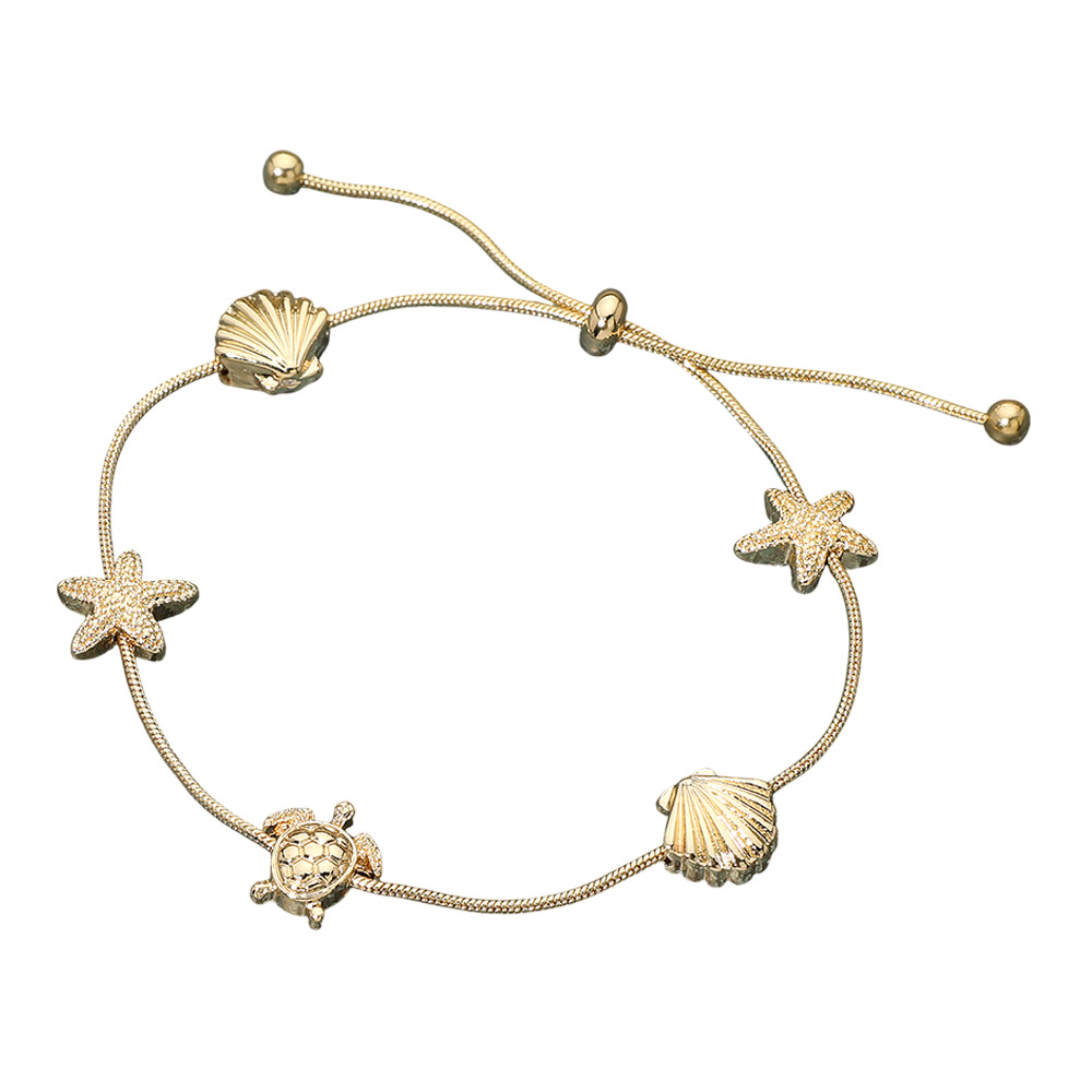 Textured Metal Starfish Shell Turtle Station Cinch Pull Tie Bracelet