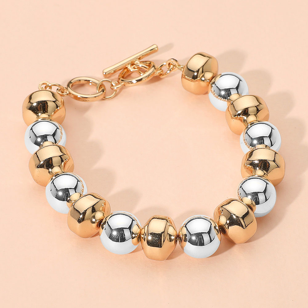 Two Tone Metal Beaded Toggle Bracelet