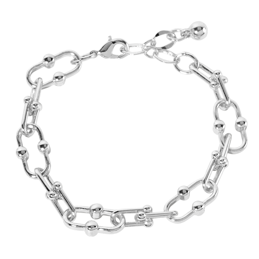 • Add a refined touch to your ensemble with this modern link bracelet, featuring a clean open-link design accented by polished beaded details. Perfect for layering or wearing solo, this versatile piece effortlessly complements both casual and formal attire.