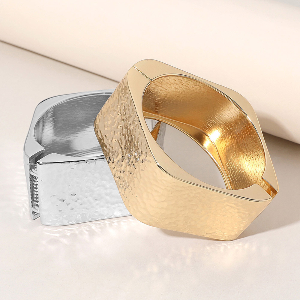 Marbled Oval Stone Accent Hammered Metal Beaded Stretch Bracelet