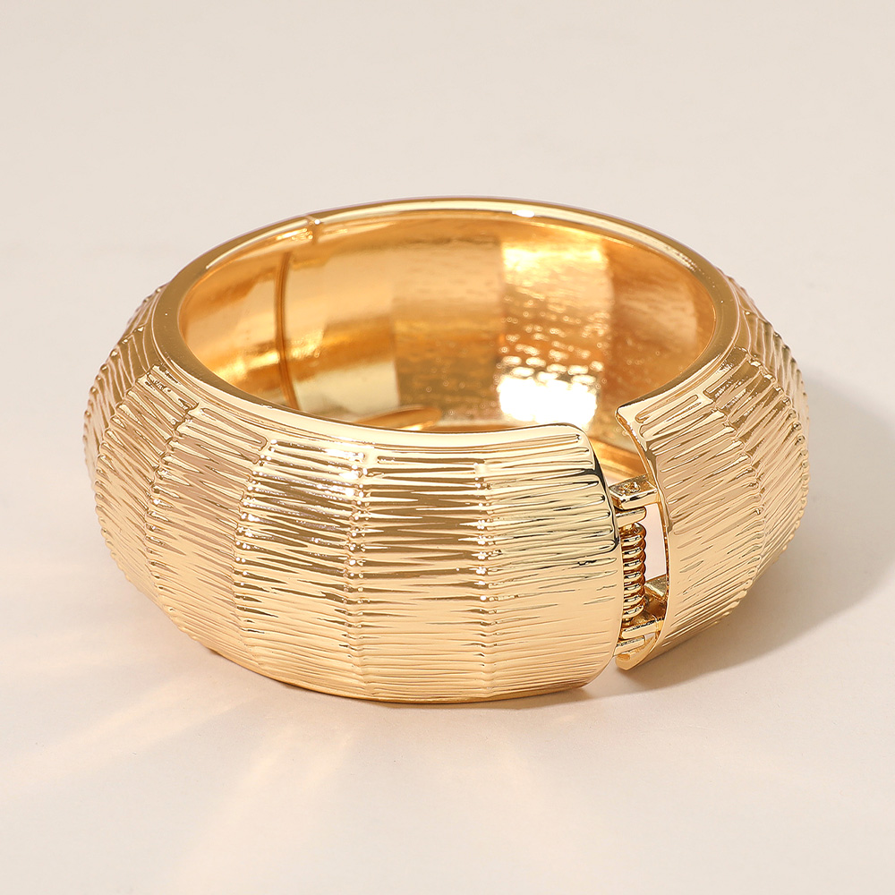 • Make a bold impression with this textured wide bangle bracelet featuring a sleek, eye-catching design. Perfect for elevating casual or dressy outfits, this statement piece adds a touch of modern elegance and sophistication to your accessory collection.