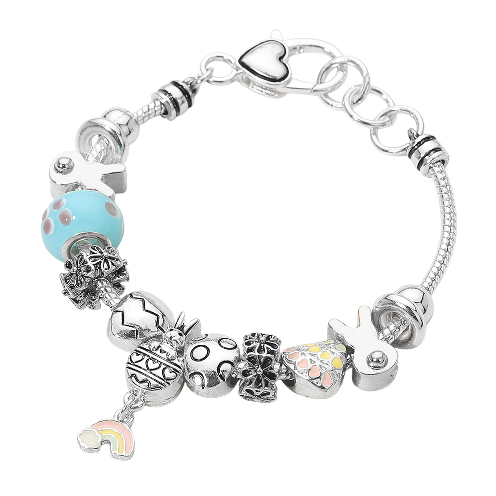 Metal Easter Bunny Enamel Egg Rainbow Multi Bead Charm Bracelet