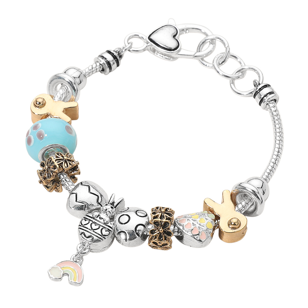 Metal Easter Bunny Enamel Egg Rainbow Multi Bead Charm Bracelet