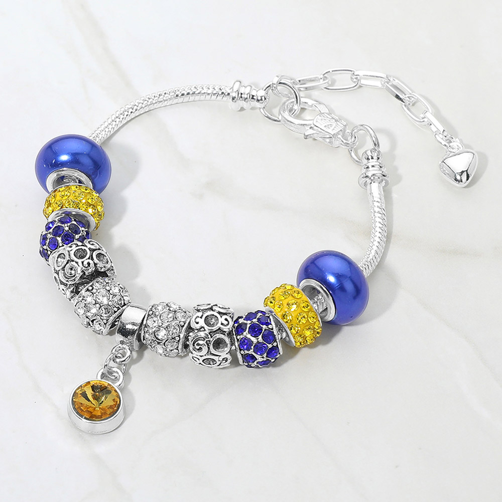 Round Stone Bezel Charm Accent Multi Beaded Bracelet