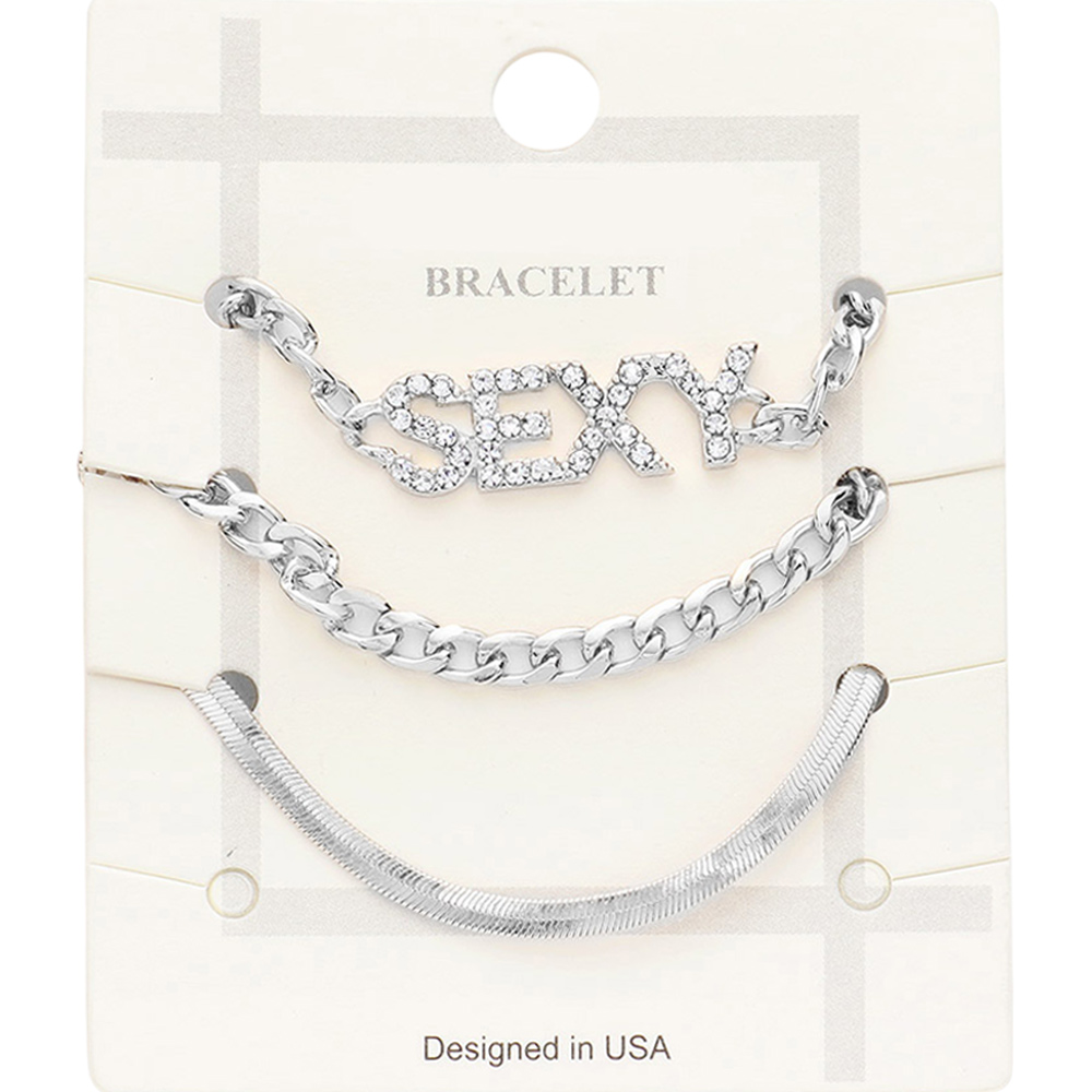 3PCS - SEXY Rhinestone Embellished Metal Chain Bracelets