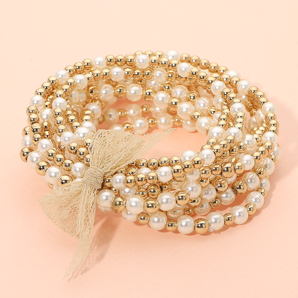 Details • Size : 2" H • Stretchable • This multi-strand pearl bead bracelet set brings elegant charm to any outfit. Featuring layered beading and a soft bow accent, it offers a refined, feminine touch perfect for elevating both everyday looks and special-occasion styles with timeless sophistication. • Lead and Nickel Compliant