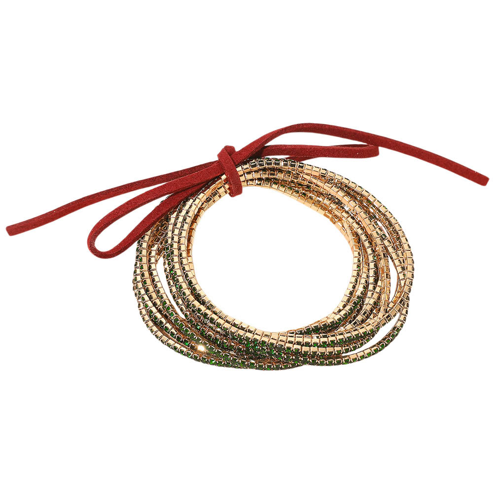 • Colorful wrap bracelet featuring multiple strands with shimmering bead accents and an adjustable tie closure. A playful accessory perfect for casual and festive looks.