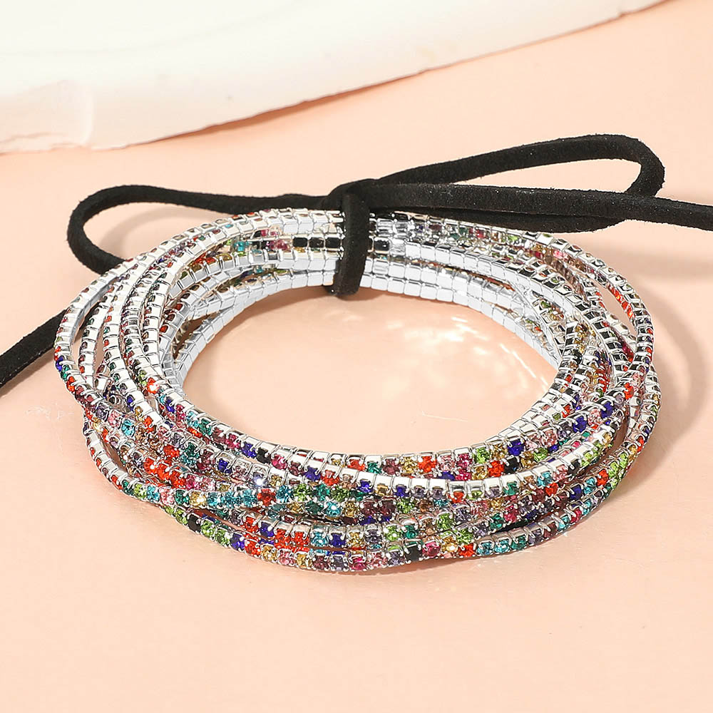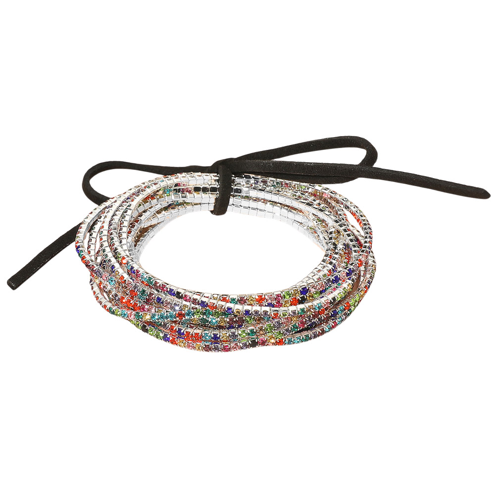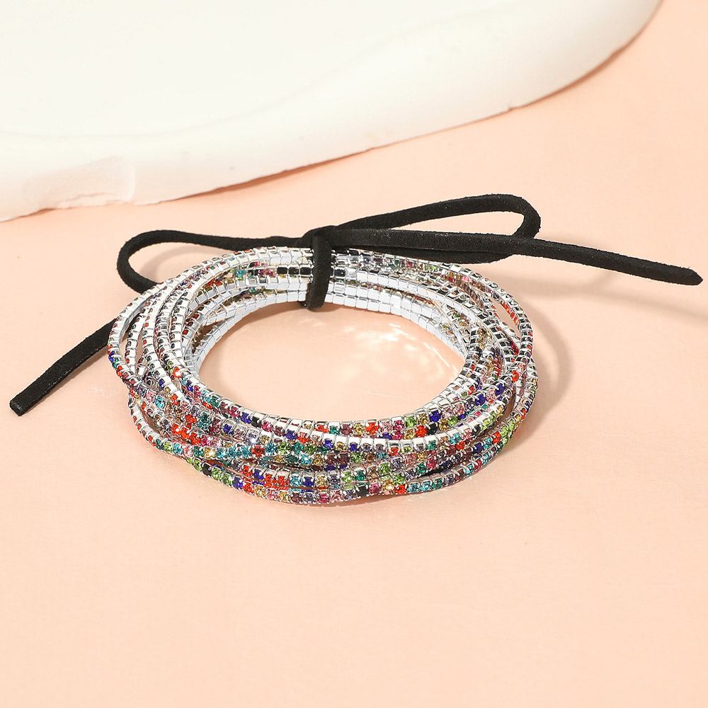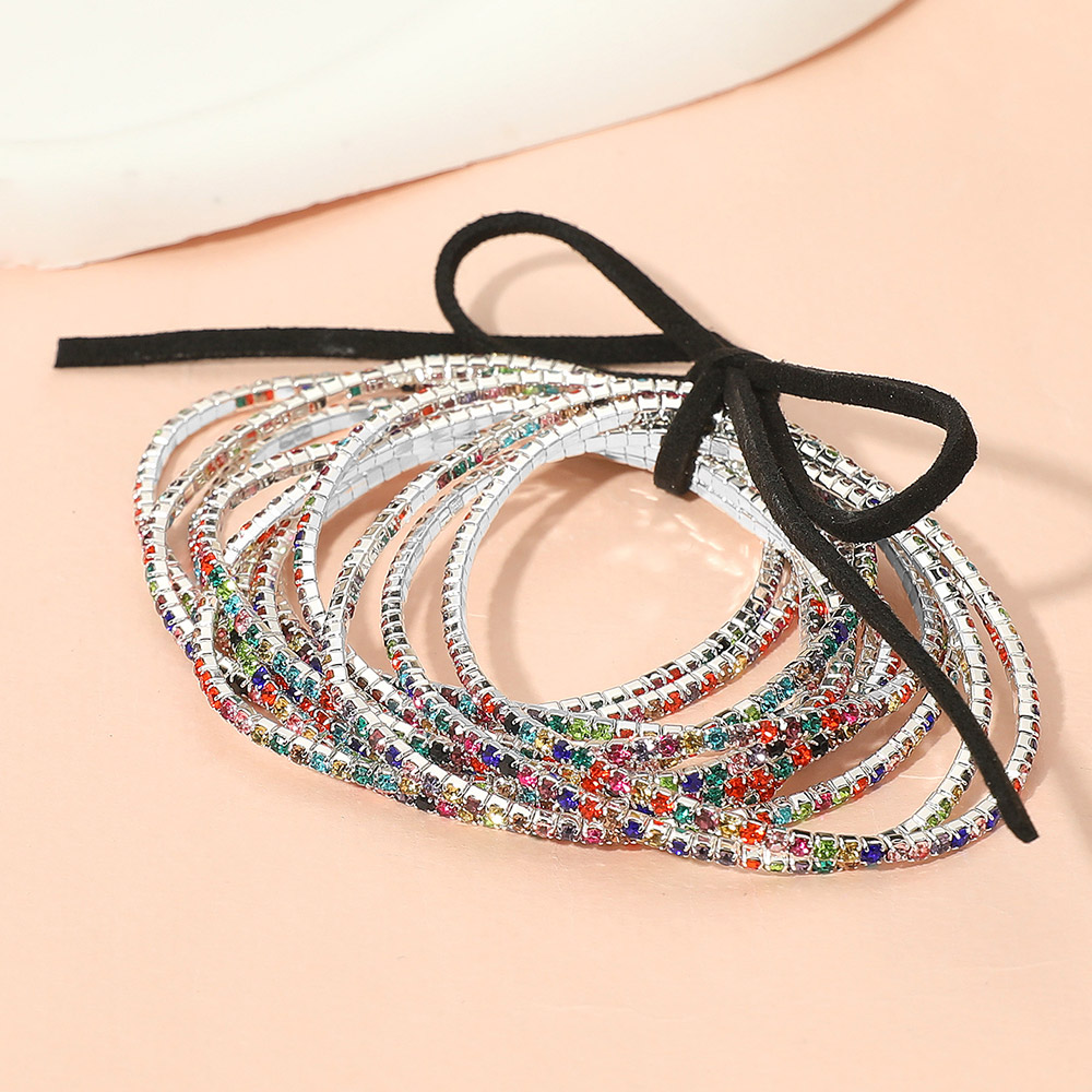 12PCS - Ribbon Colorful Rhinestone Layered Stretch Bracelets