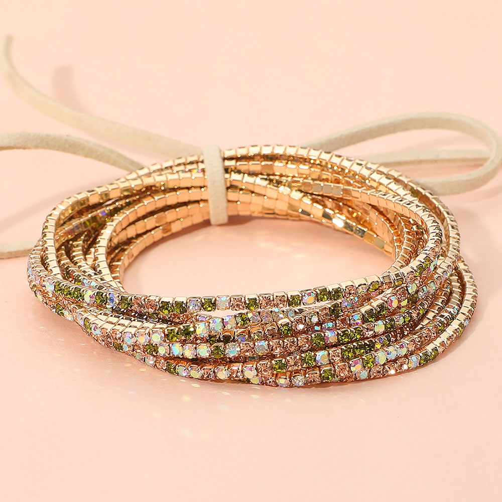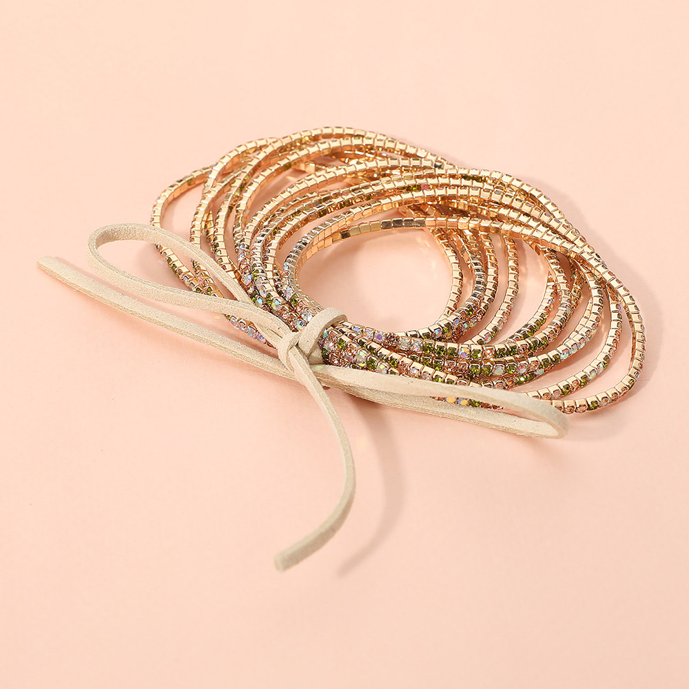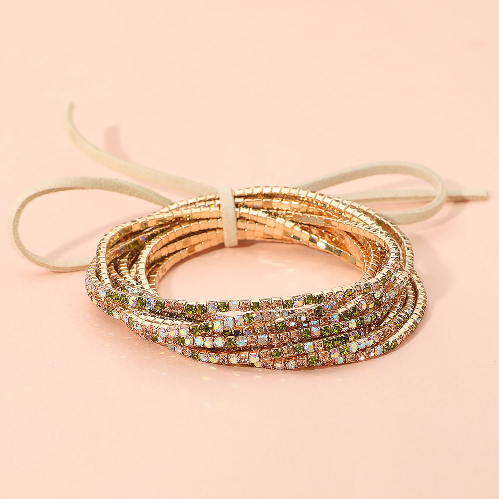 12PCS - Ribbon Colorful Rhinestone Layered Stretch Bracelets