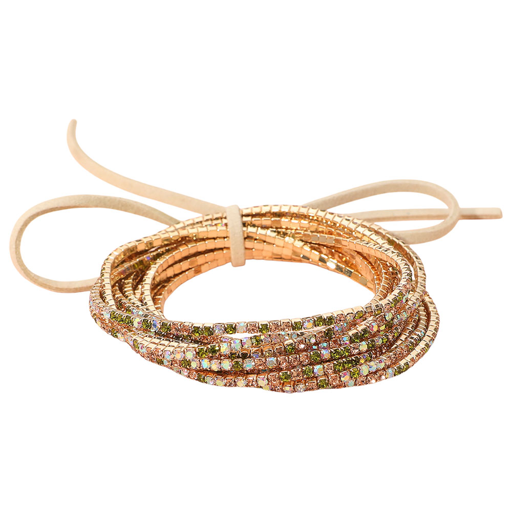 • Colorful wrap bracelet featuring multiple strands with shimmering bead accents and an adjustable tie closure. A playful accessory perfect for casual and festive looks.