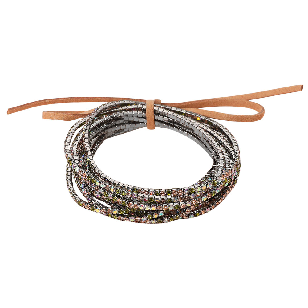• Colorful wrap bracelet featuring multiple strands with shimmering bead accents and an adjustable tie closure. A playful accessory perfect for casual and festive looks.