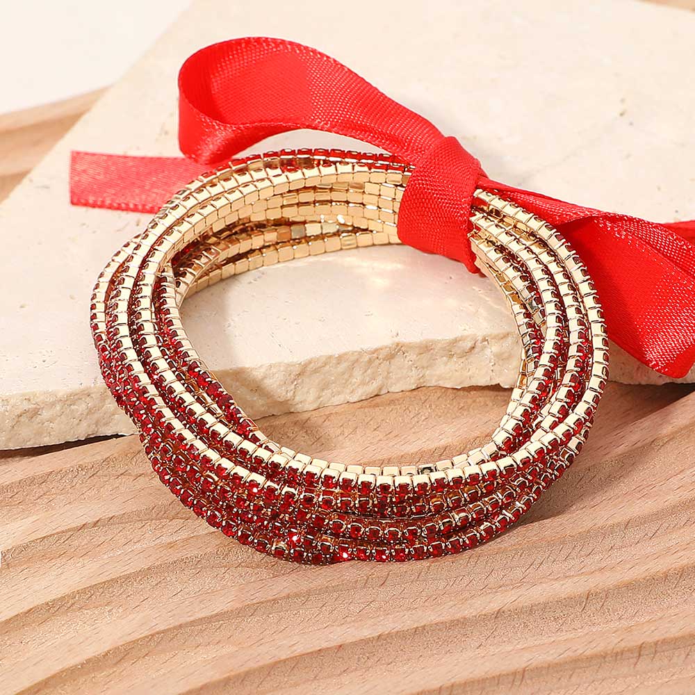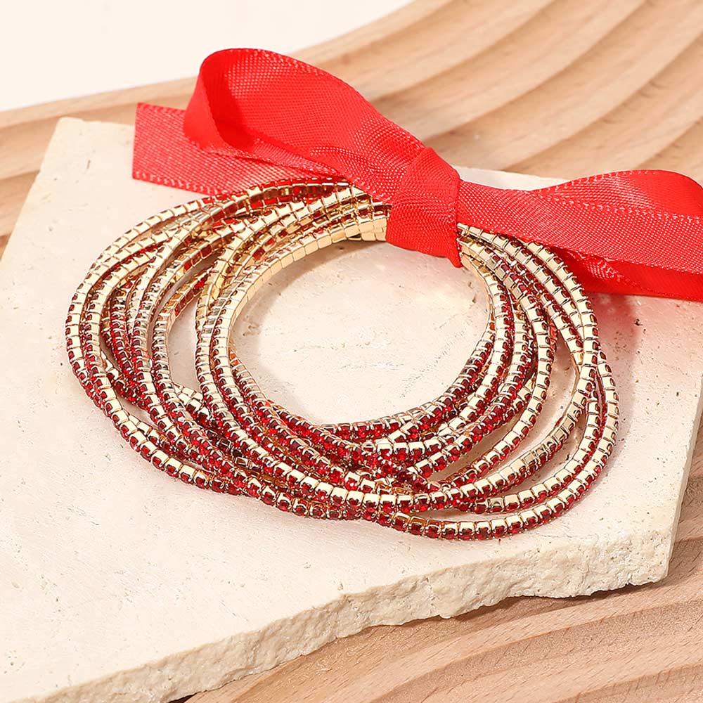 12PCS - Ribbon Slim Rhinestone Stretch Multi Layered Bracelet