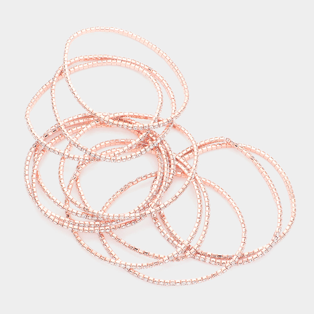 12PCS - Stackable Rhinestone Stretch Evening Bracelets