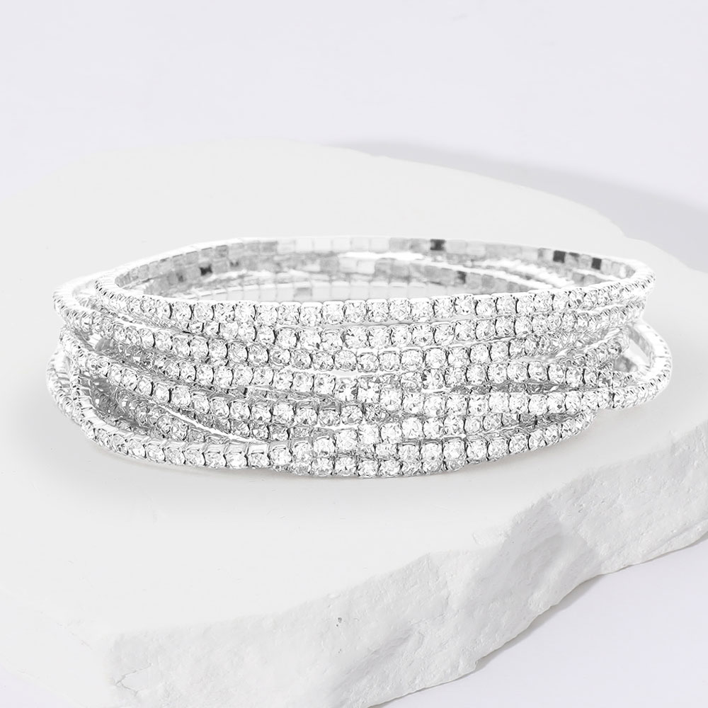 12PCS - Stackable Rhinestone Stretch Evening Bracelets
