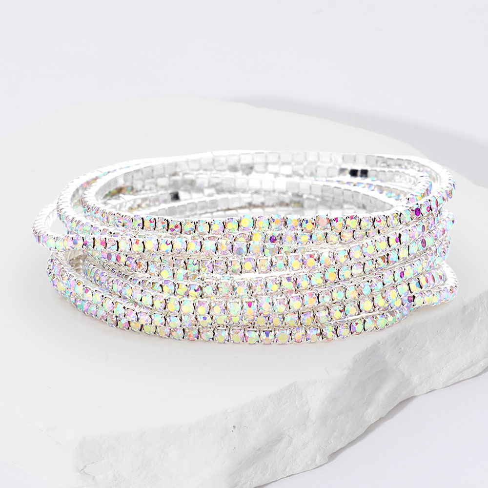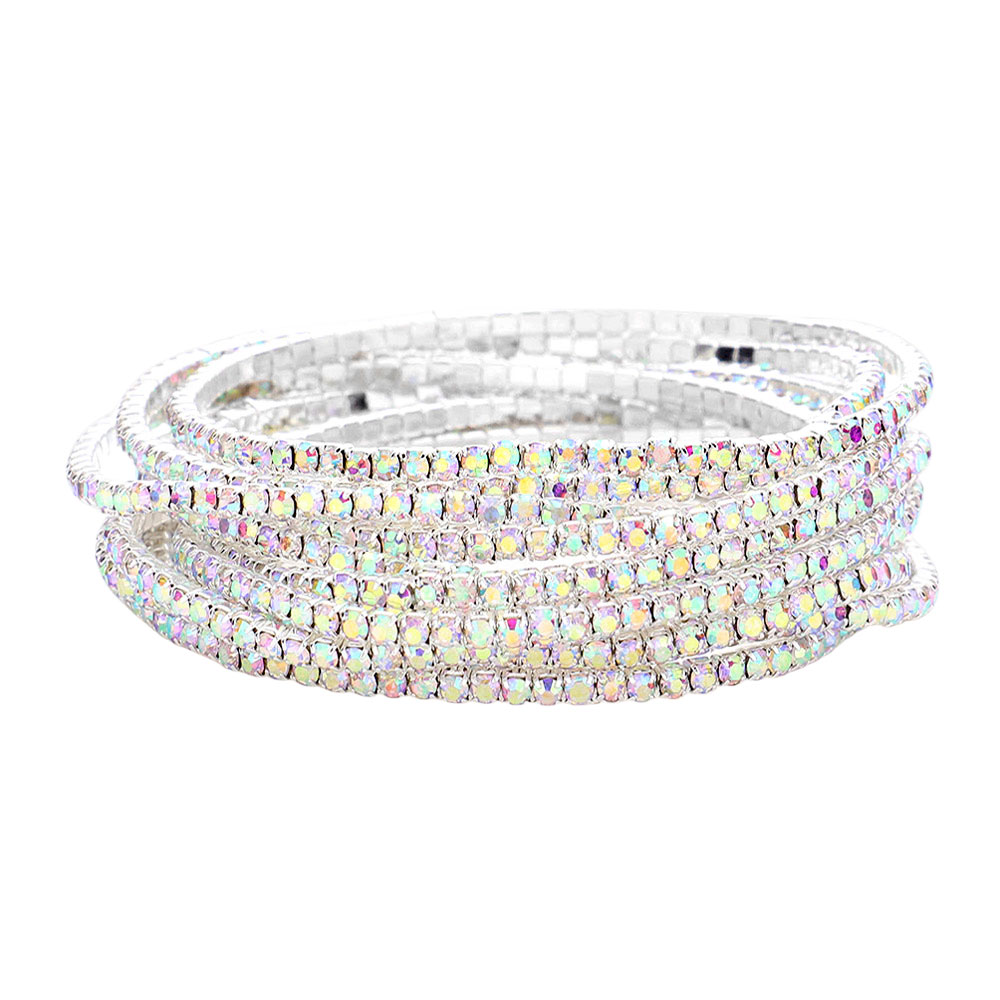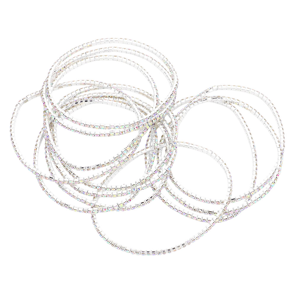 Details • Size : 1.2" H • Stretchable • Complete your look with this set of 12 stackable stretch bracelets. Sleek and versatile, these lightweight stretch bangles feature a shimmering design that layers beautifully for casual or dressy outfits, offering endless styling possibilities with modern elegance.