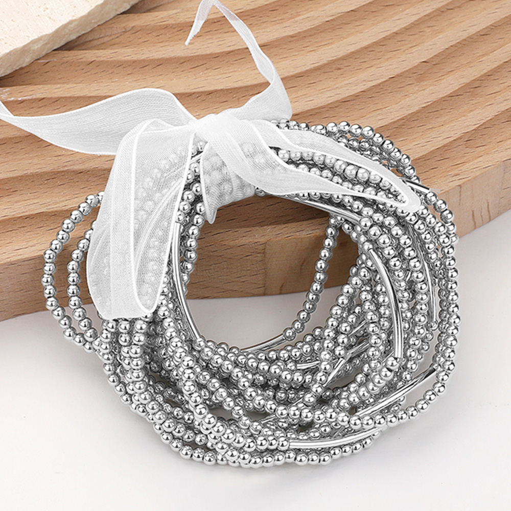 20PCS - Metal Ball Beaded Stretch Multi Layered Bracelets