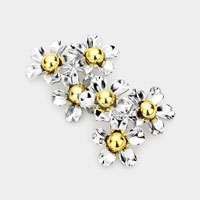 Flower Accented Triple Marquise Stone Link Dangle Evening Earrings