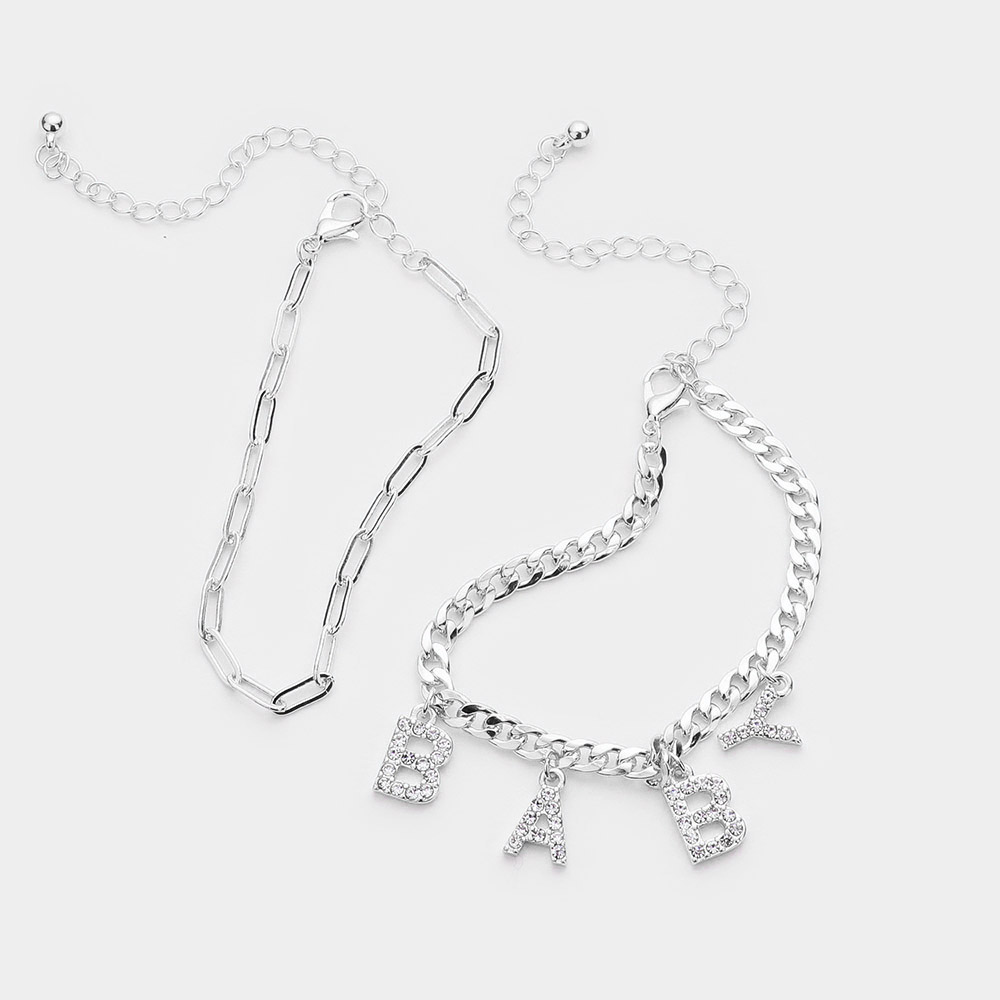 2PCS - BABY Rhinestone Embellished Metal Chain Bracelets