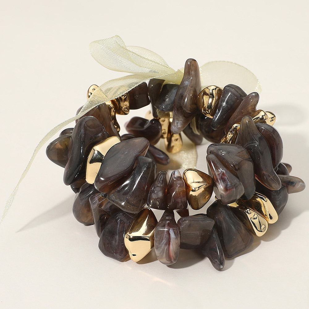 2PCS - Chunky Marbled Resin Metal Beaded Stretch Multi Layered Bracelets