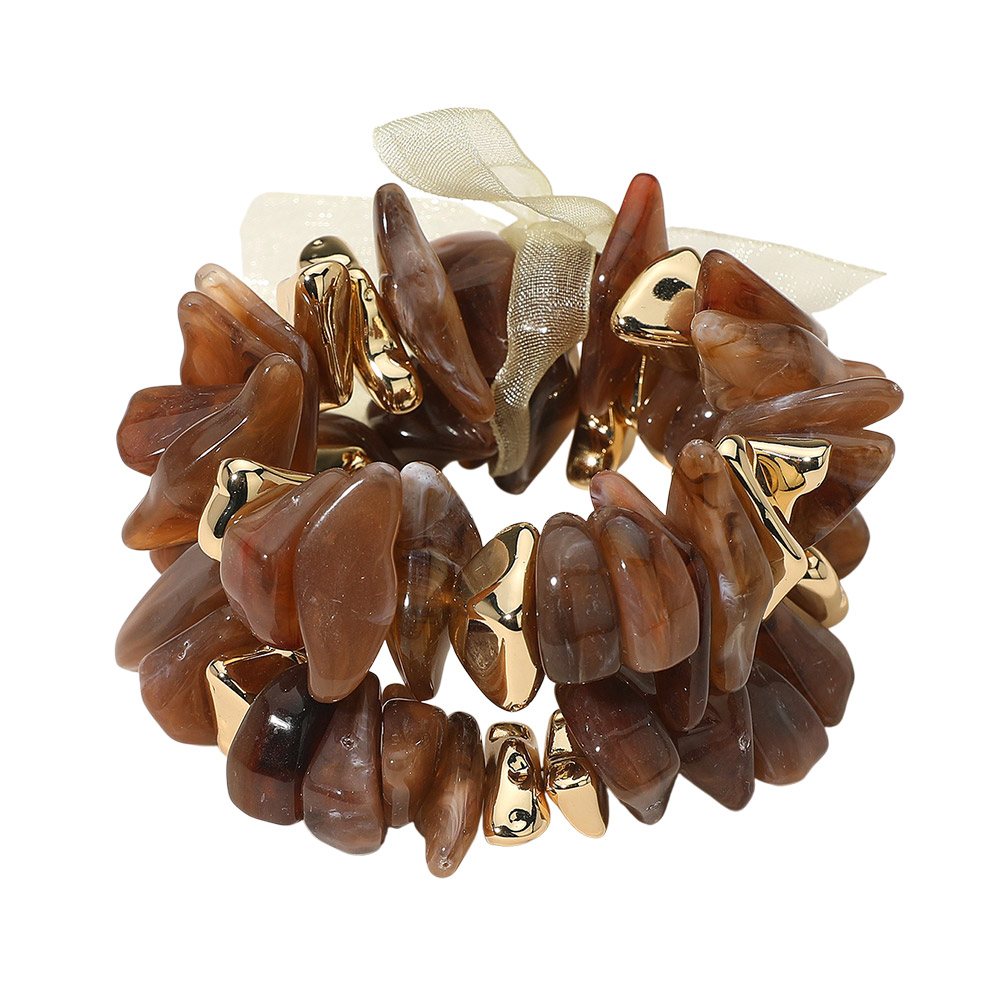 • Elevate your style with this chunky stone bead stretch bracelet featuring polished accents and a delicate ribbon detail. Its bold yet elegant design makes it a versatile accessory, perfect for adding texture and personality to both everyday looks and special occasions.