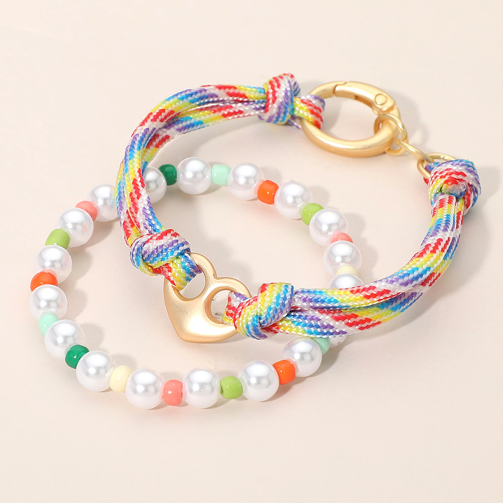Details • Size 1 : 0.5" H, 7" + 0.75" L / Lobster Clasp Closure • Size 2 : 0.25" H / Stretchable • This layered bracelet features a playful braided cord paired with smooth round beads and a heart-inspired accent for a fun yet stylish look. Designed for easy stacking or standalone wear, it adds personality to everyday outfits, casual looks, gifting moments, and seasonal collections while offering a comfortable fit and eye-catching detail. • Lead and Nickel Compliant