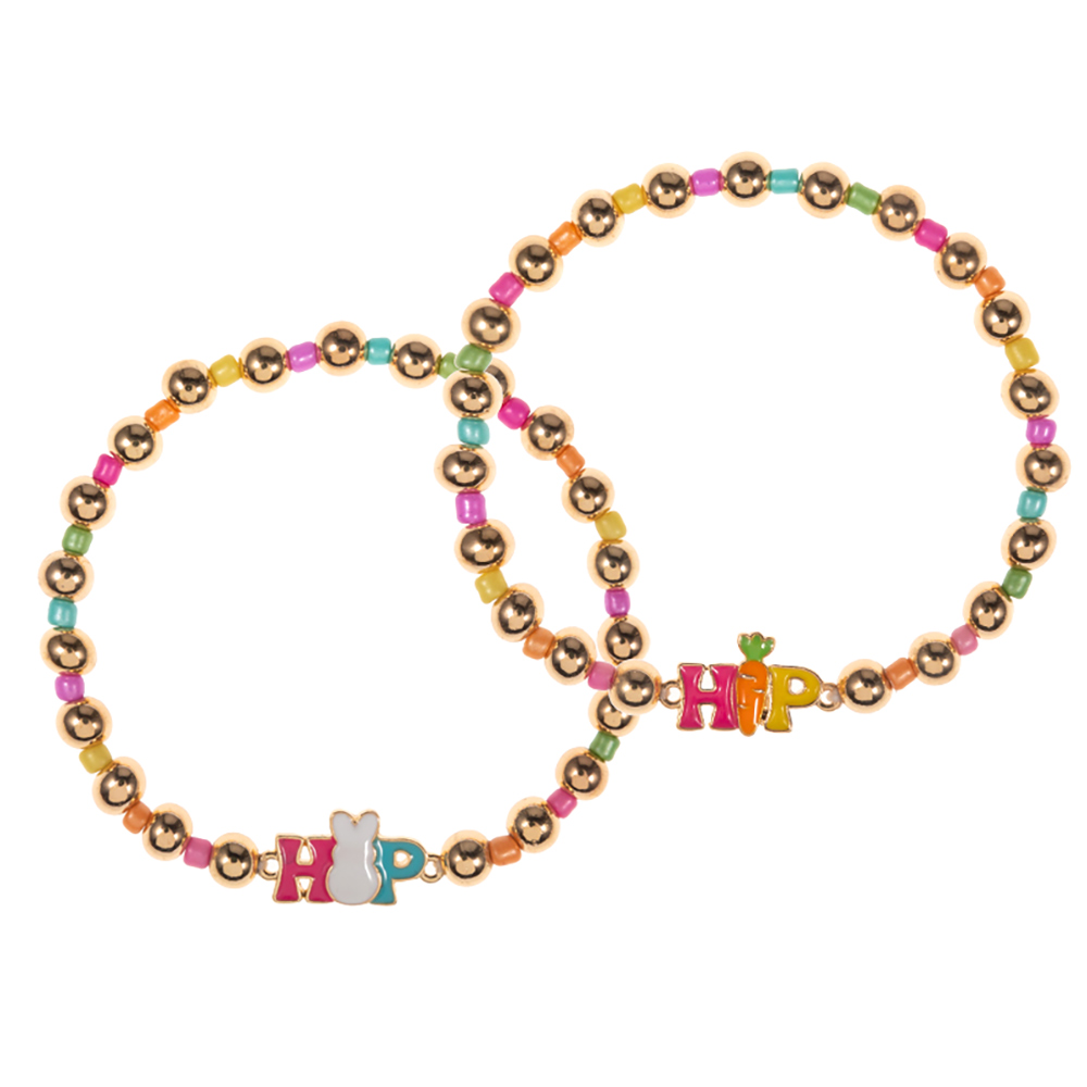 2PCS - Enamel Easter HIP HOP Message Ball Beaded Stretch Bracelets